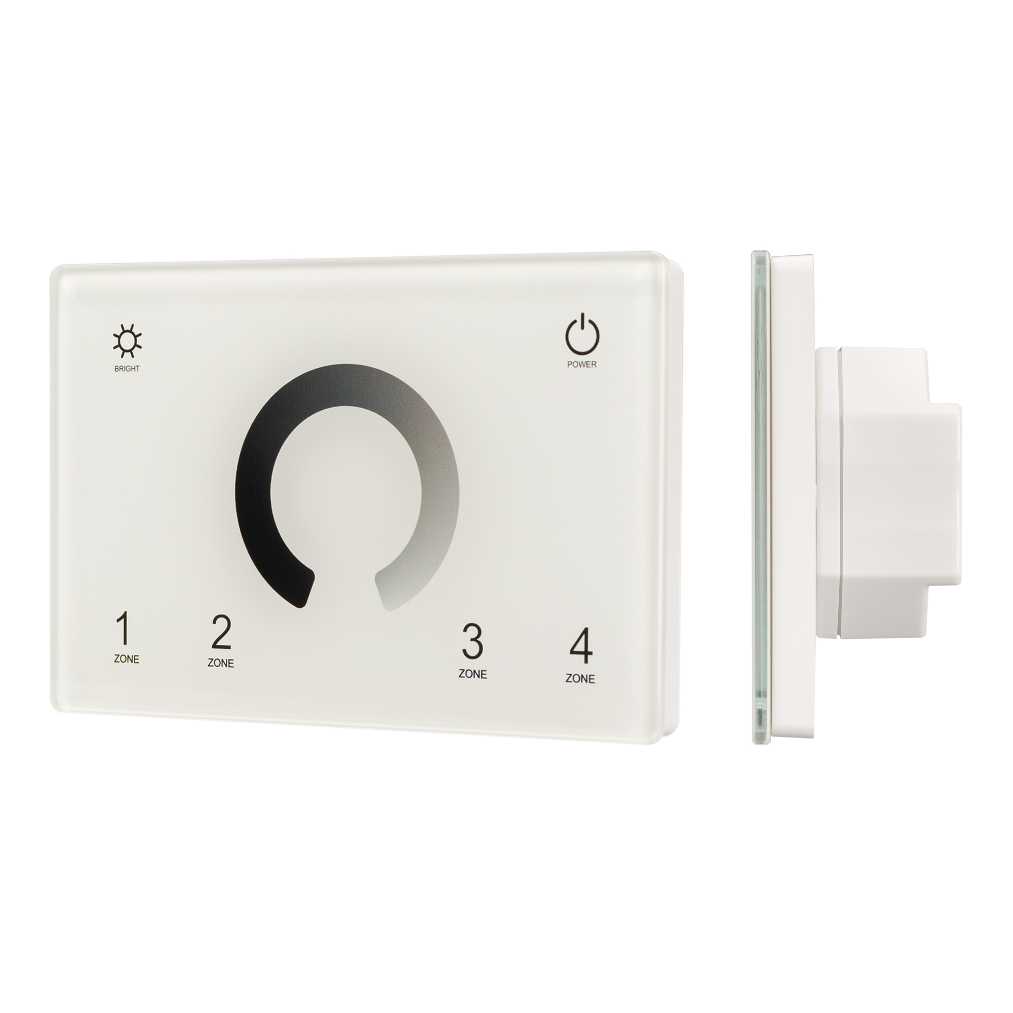 Встраиваемая сенсорная панель в "итальянском" стиле, изготовленная из высококачественного стекла, защищенного от появления царапин. Изделие позволяет осуществлять основные функции управления светом: включение/выключение, регулировка яркости, сохранение предустановок для 4 световых зон. Панель совместима с диммерами и контроллерами SMART по радиоканалу 2.4G (количество привязываемых диммеров и контроллеров не ограничено) и может управлять DMX-диммерами по проводной шине DMX512. Выходной сигнал DMX соответствует стандартному протоколу DMX512 и совместим с оборудованием DMX любого производителя. Панель белого цвета, питание от сети 230В. Габариты устройства 120х80х37 мм, встраивается в стандартную монтажную коробку.