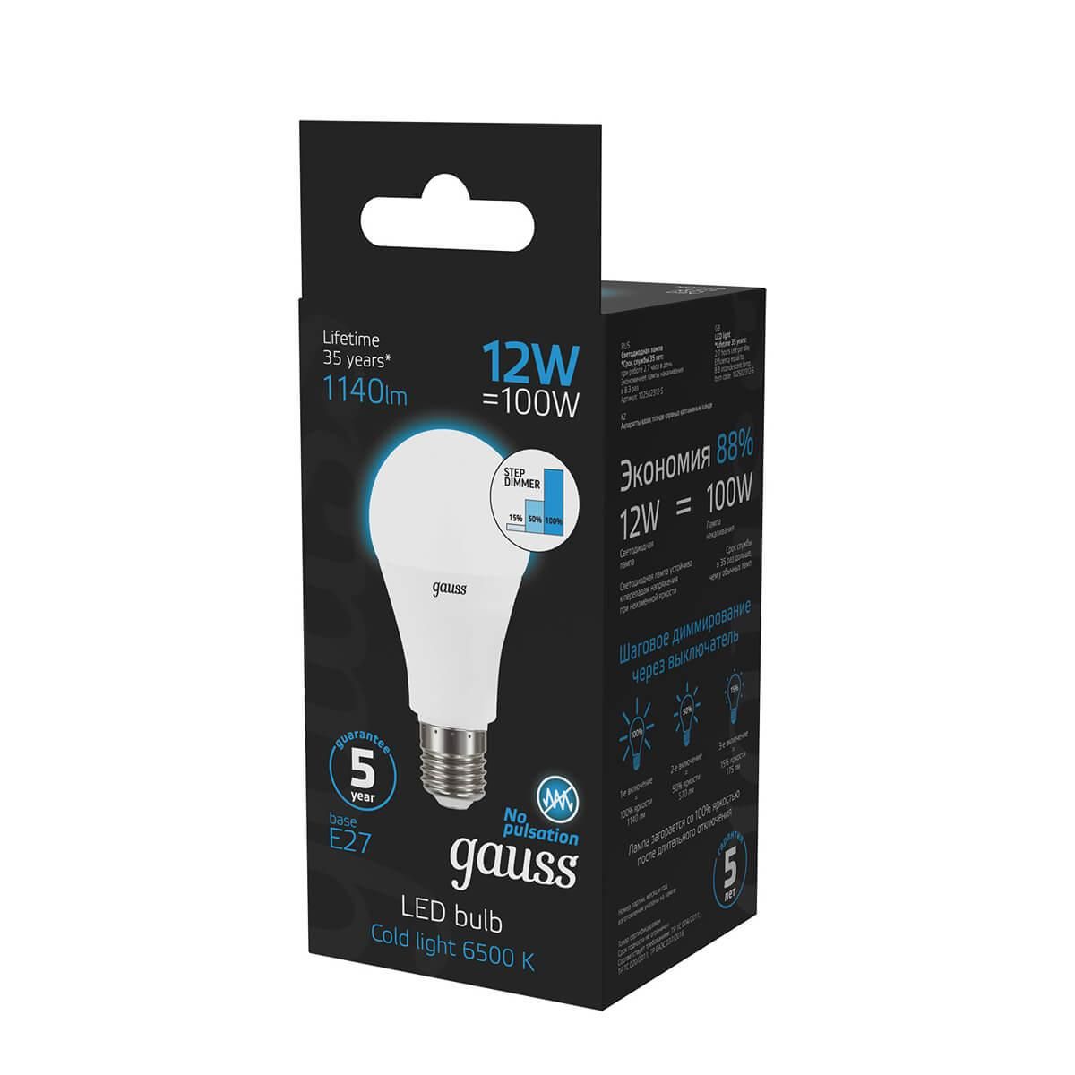 Премиальная серия ламп Gauss Black — надежные источники освещения высокого качества. Благодаря использованию качественных комплектующих и современных технологий лампы этой серии имеют один из самых высоких показателей энергоэффективности и долговечности. Уровень пульсации светового потока в светодиодных лампах Gauss ниже 5%, поэтому они создают комфортный и безопасный свет. Покупатель ламп серии black может быть уверен, что получает безопасный для глаз, яркий и комфортный свет. Передовые технологические решения обеспечивают стабильный световой поток даже при перепадах напряжения. Длительный срок гарантии — решение, основанное на уверенности в качестве продукции и ее долговечности.