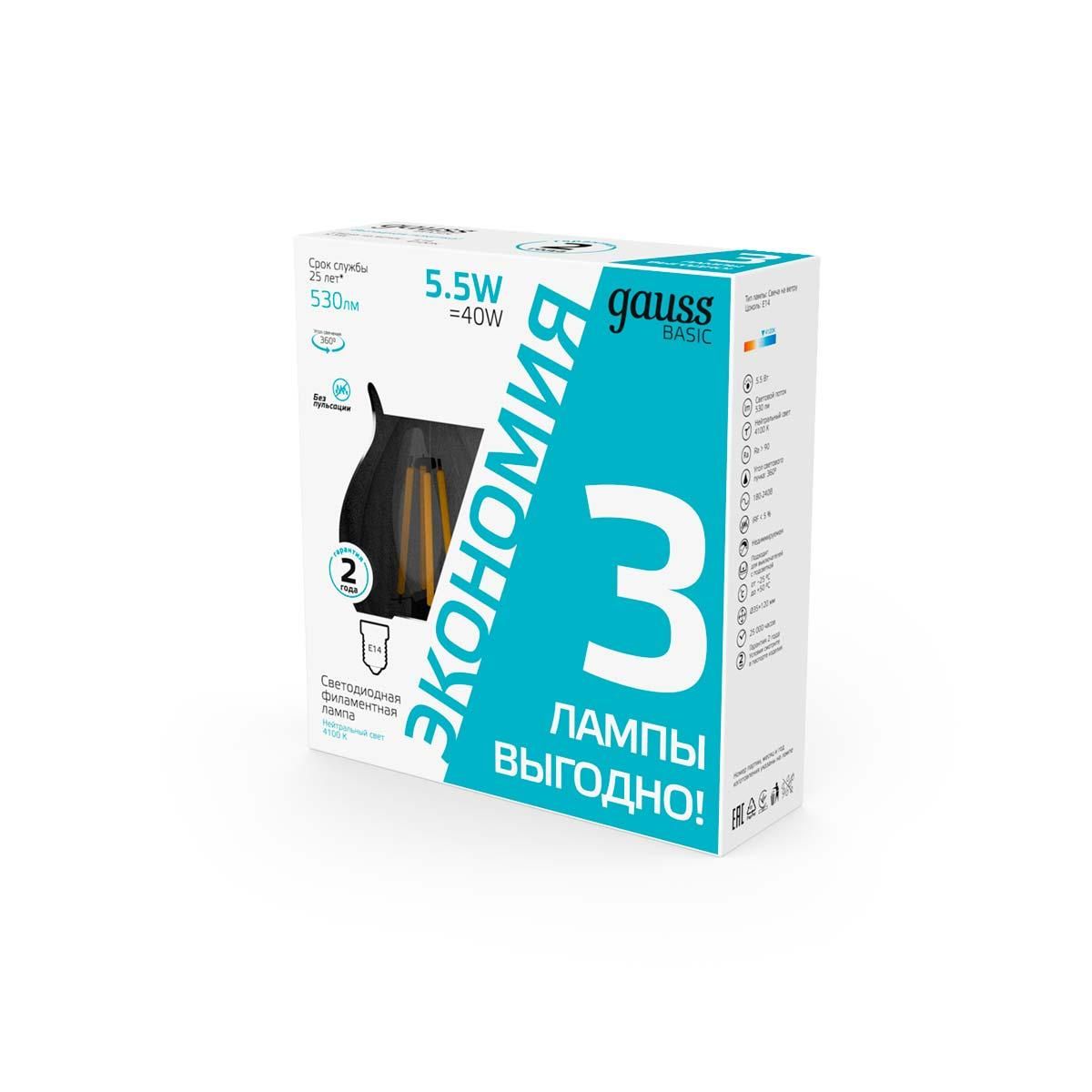 Лампа cветодиодная Gauss E14 5,5W 4100K прозрачная 3 шт. 1041126T от производителя Gauss. Артикул производителя GAUSS_1041126T.