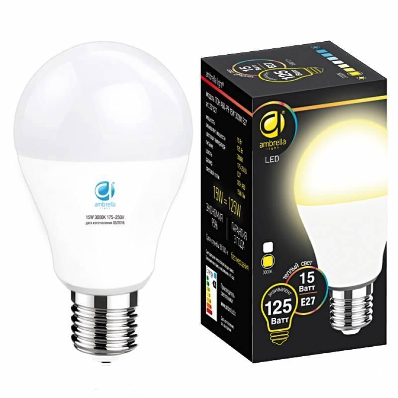 Лампа светодиодная Ambrella light E27 15W 3000K белая 201627 от производителя Ambrella Light. Артикул производителя AMBRELLA_201627.