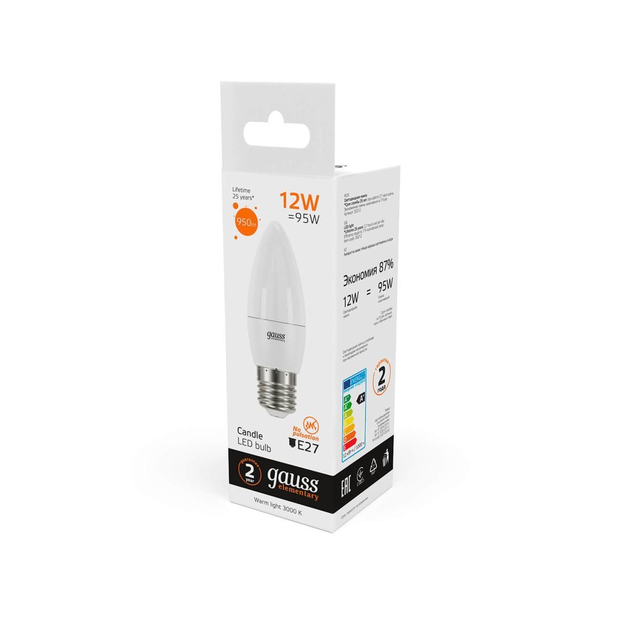 Светодиодные лампы Gauss Elementary Candle созданы в форме свечи. Лампы подойдут как для домашнего, так и для коммерческого использования. Такой тип освещения прекрасно смотрится в светильниках без плафонов или устанавливается в люстры и бра. Модель обладает широким диапазоном цветовых температур и мощностей, что поможет создать атмосферу тепла и уюта или концентрации. Равномерный спектр света создает зрительный комфорт в любом помещении. Данный тип освещения от Gauss обеспечивают стабильную работу в течение всего срока службы.