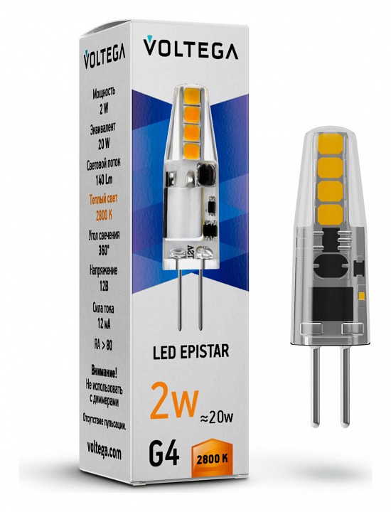 Лампа светодиодная Voltega Capsule G4 G4 2Вт 2800K 7142. Светодиодные лампа Voltega — это современное решение для качественного освещения вашего дома или офиса. Лампы производятся по самым высоким стандартам, что гарантирует высокое качество продукта, который прослужит долгие годы.