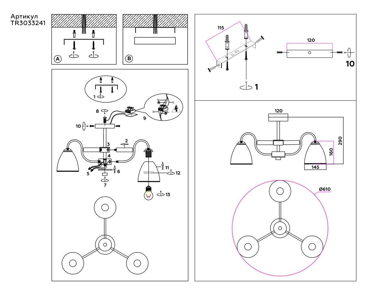 Потолочная люстра Ambrella light Traditional Modern TR3033241 от производителя Ambrella Light. Артикул производителя AMBRELLA_TR3033241.