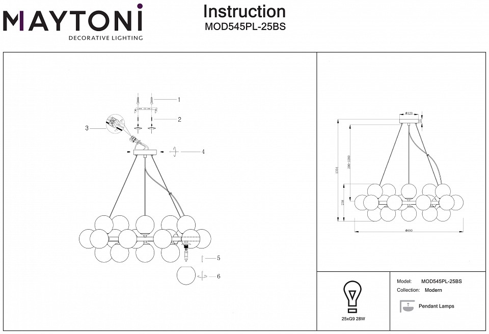 Подвесной светильник Modern MOD545PL-25BS Maytoni Dallas. Немецкий бренд Maytoni хорошо известен европейским потребителям и завоевал особую популярность в России. Покупатели ценят в продукции бренда высокое качество, исключительную безопасность, использование современных экологичных материалов. Отдельно отмечают фирменный стиль Maytoni, в нем функциональность дополняется удобством пользования, а дизайн соответствует современным тенденциям.