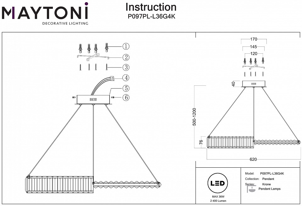 Подвесной светильник Pendant P097PL-L36G4K Maytoni Krone. Немецкий бренд Maytoni хорошо известен европейским потребителям и завоевал особую популярность в России. Покупатели ценят в продукции бренда высокое качество, исключительную безопасность, использование современных экологичных материалов. Отдельно отмечают фирменный стиль Maytoni, в нем функциональность дополняется удобством пользования, а дизайн соответствует современным тенденциям.