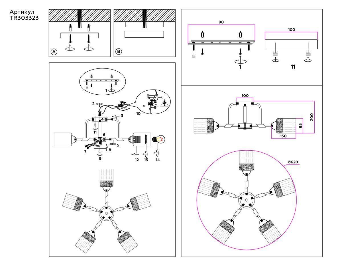 Потолочная люстра Ambrella light Traditional Modern TR303323 от производителя Ambrella Light. Артикул производителя AMBRELLA_TR303323.