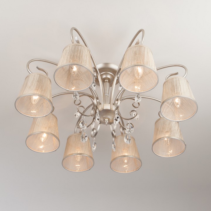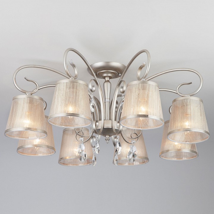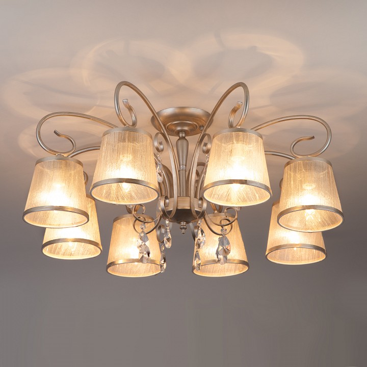 Потолочная люстра с абажурами 60065/8 серебро Eurosvet Liona. Бренд Eurosvet предлагает только актуальные и востребованные товары высокого качества и по оптимальным ценам.