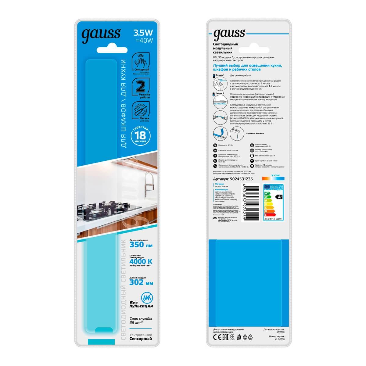 Линейные светодиодные светильники от Gauss- прекрасное решение для подсветки рабочей зоны на кухне, письменного стола, в мастерской или в любом другом пространстве. Сенсорный выключатель позволяет удобно управлять освещением. В зависимости от модели для включения светильника достаточно только приблизиться к нему или произвести легкий взмах рукой или сделать короткое касание к корпусу. Сенсорные светильники Gauss выполнены из алюминия, поэтому обладают легким весом и прочной конструкцией. Светильники различаются по мощности, световому и длиной самого светильника. Особенностью светильников от Gauss является возможность последовательного соединения в линейку нескольких светильников с помощью коннекторов и простая установка – достаточно их приклеить к поверхности с помощью двухстороннего скотча или прикрепить его с помощью металлических скоб. Набор установочных креплений для двух вариантов монтажа входят в комплектацию данного изделия.