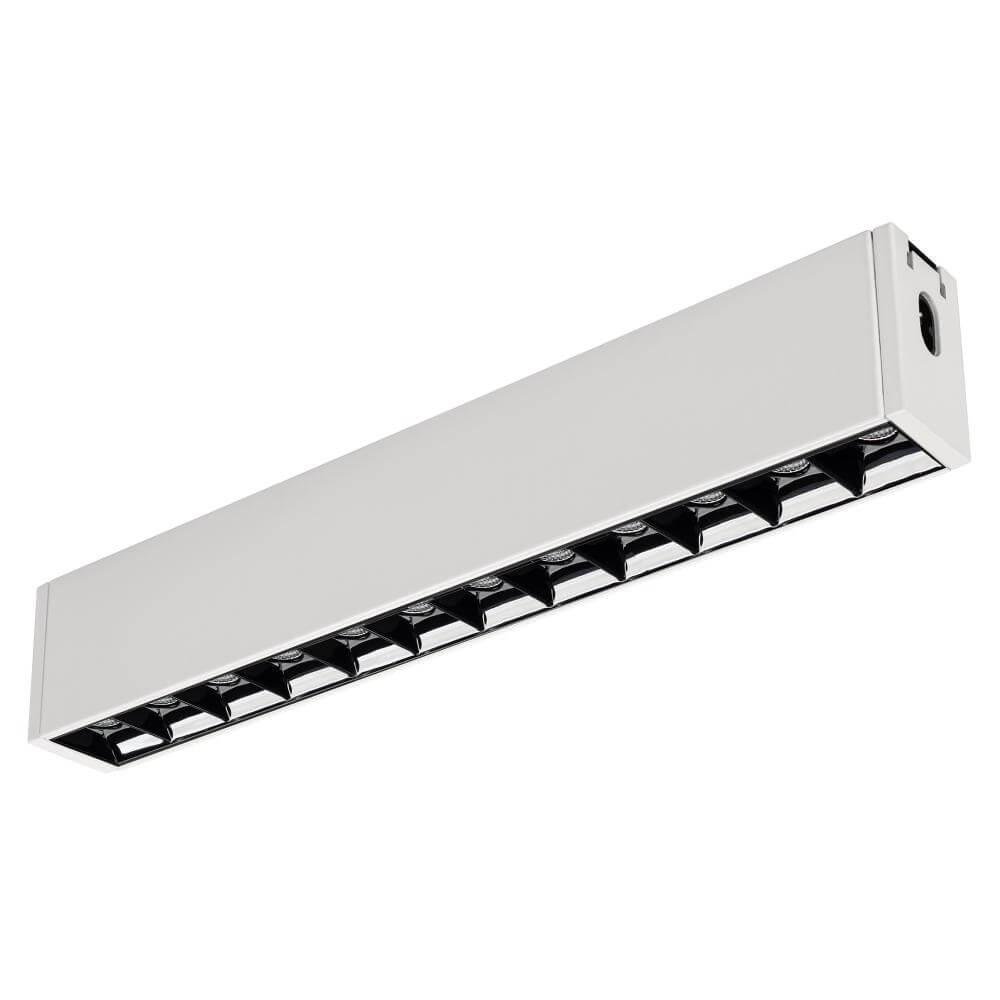 Подвесной/накладной светильник для системы CLIP 38мм, 12Вт. Цвет свечения ТЕПЛЫЙ 3000K, световой поток 860 лм, угол 36°, CRI>90. Корпус прямоугольный, металл, цвет белый, IP40. Размеры LxWxH 330x38x64мм. Входное напряжение DC24V, мощность 12Вт. Драйвер в комплект не входит.