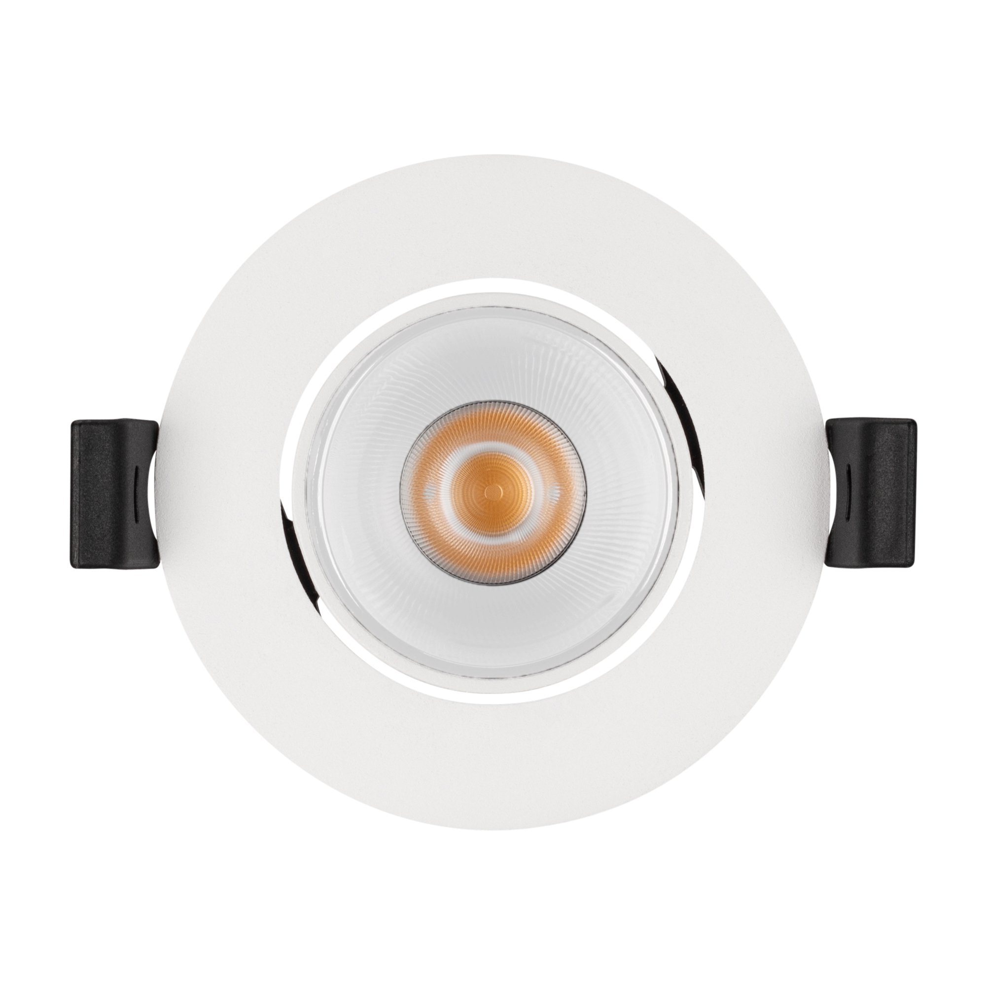 Встраиваемый поворотный светильник даунлайт. Мощность 8.4 Вт, св. поток 800 лм, 95 лм/Вт, дневной 4000 K, CRI>90, UGR<16, угол 32°, напряжение питания 230 В. Белый круглый корпус из алюминия, белый ГЛЯНЦЕВЫЙ отражатель из PMMA, степень защиты IP20. Размер: диаметр 82 мм, высота 51 мм. Монтаж встраиваемый, установочное отверстие: диаметр 75 мм. Драйвер 21-42 В, 200 мА, пульсация <2%.