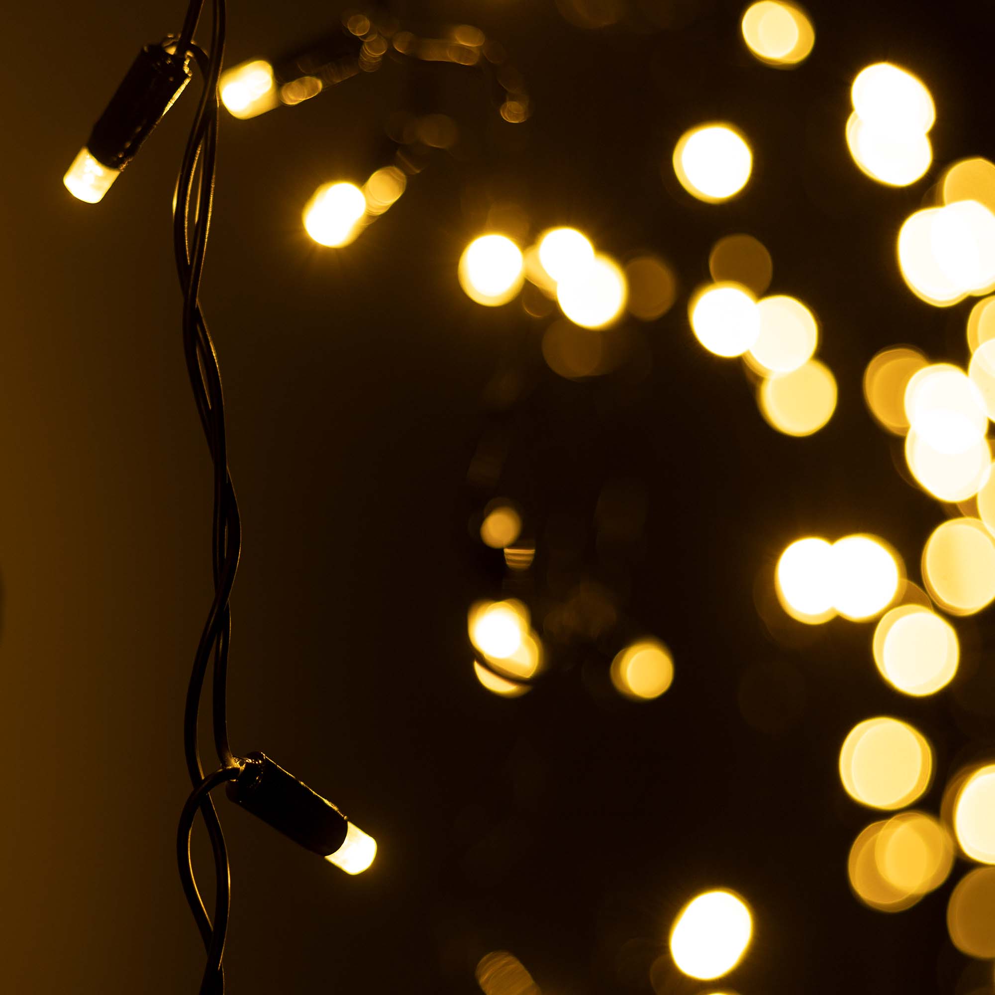 Уиверсальная светодиодная гирлянда "БАХРОМА" серии Classic идеально подходит для украшения и создания праздничной атмосферы как внутри помещений, так и снаружи (степень пылевлагозащиты IP65 позволяет размещать гирлянду на улице под навесом). Имея размеры 2400 x 600 мм, она может использоваться для оформления небольших и средних площадей. Универсальные соединительные разъемы позволяют наращивать длину до 50 м без использования дополнительных аксессуаров. Прозрачная вогнутая линза и эффект мерцания редких точек обеспечивают яркое и динамичное освещение, выделяя украшаемые объекты. Тёплый белый свет, в сочетании с мерцающим белым, помогают создать необходимую атмосферу для декоративного объекта. Провод изготовлен из ПВХ и окрашен в чёрный цвет. Аксессуары для подключения гирлянды к сети приобретаются отдельно.