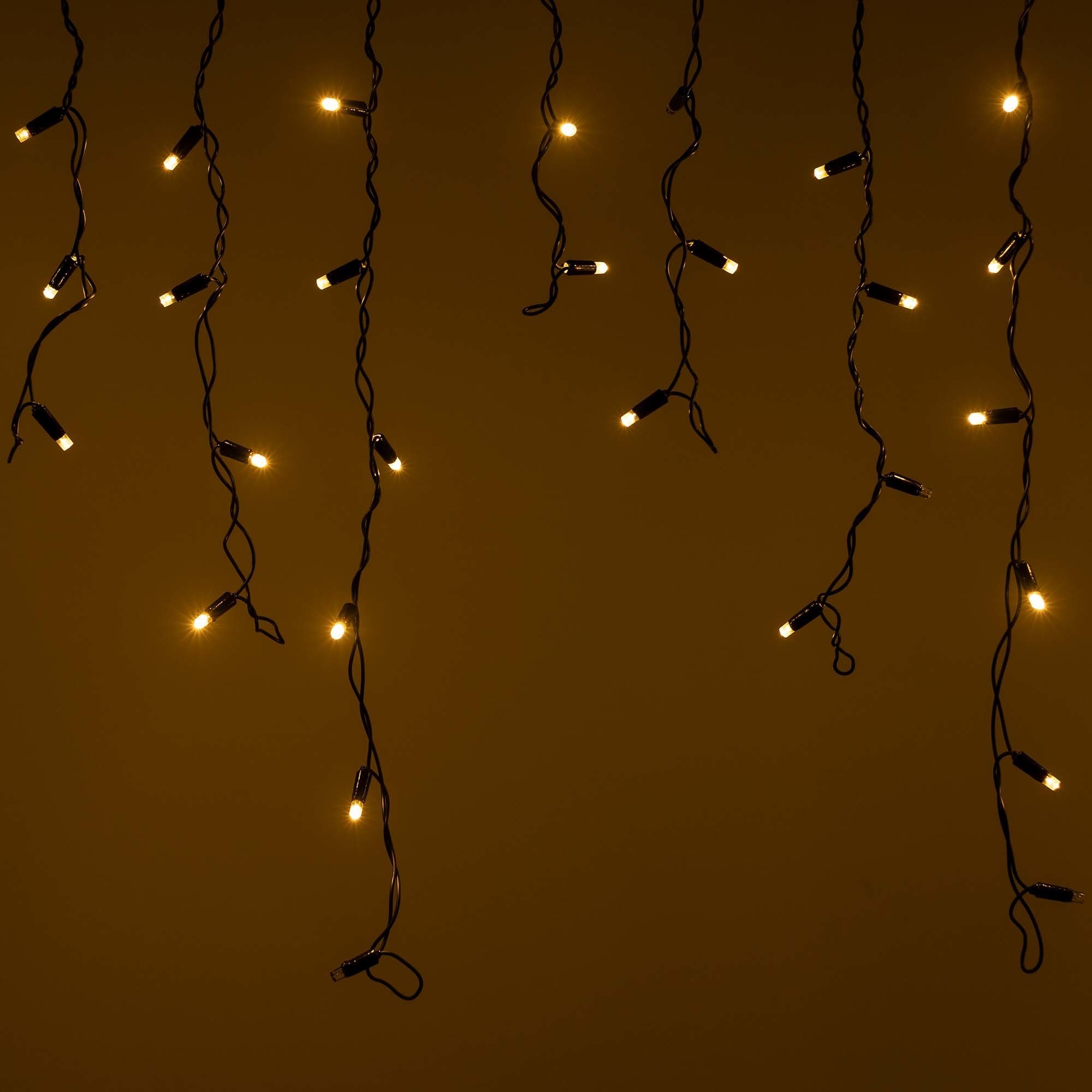 Светодиодная бахрома Classic. Размер 2400 мм (длина 2400 мм, по длине 24 нити высотой 200/600 мм). Количество светодиодов 88 шт размером 7 мм. Основной цвет свечения ТЕПЛЫЙ БЕЛЫЙ (3000 К), эффект мерцания редких точек (ТЕПЛЫЙ БЕЛЫЙ 3000К) с резким световым рисунком (прозрачная вогнутая линза), соотношение светодиодов: 66 теплых постоянного свечения / 12 теплых с мерцанием. Провод черный, ПВХ. Питание 230 В, Мощность 6 Вт, защита IP65, применение на улице под навесом. Аксессуары для подключения приобретаются отдельно.