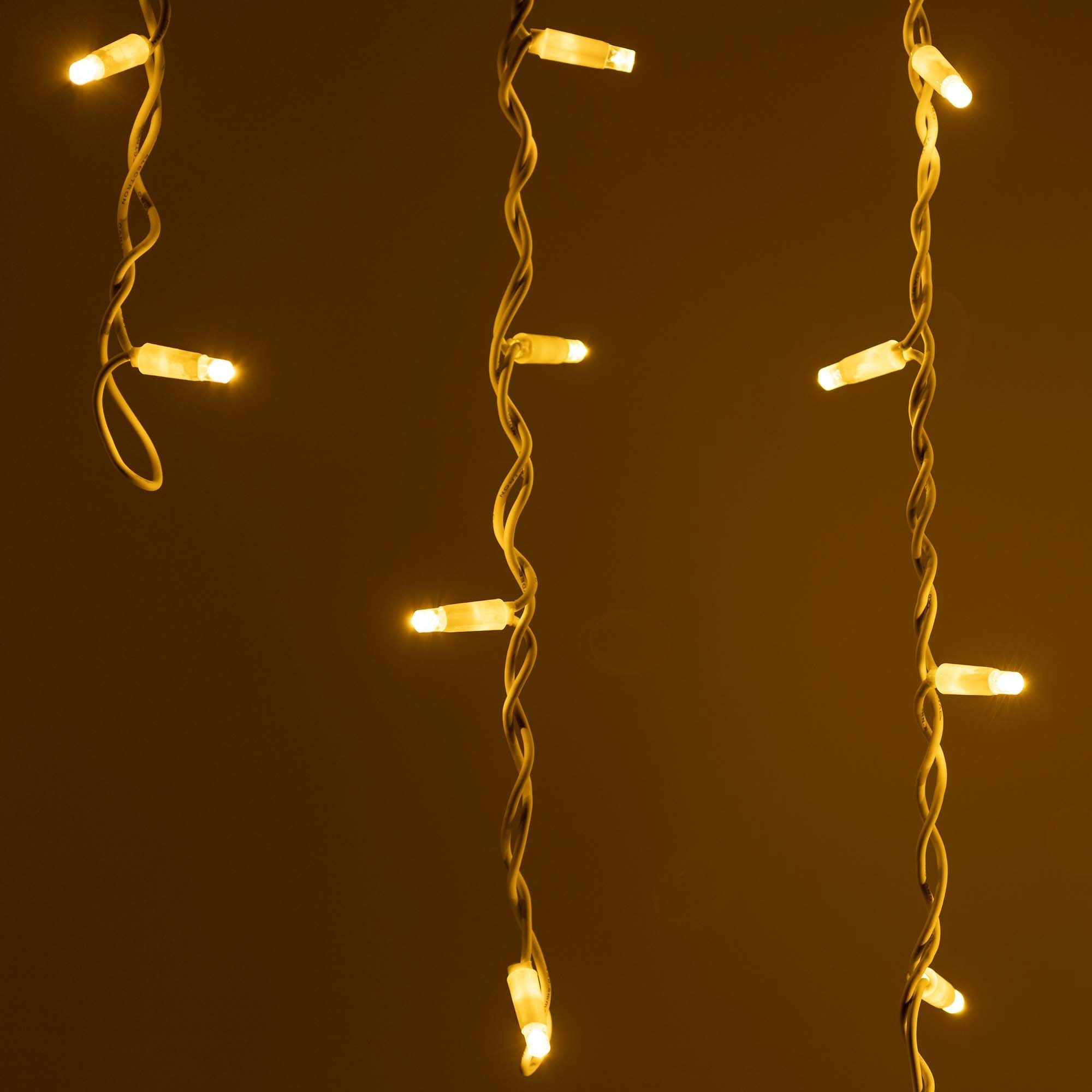 Светодиодная бахрома Classic. Размер 4000 мм (длина 4000 мм, по длине 32 нити высотой 200/600 мм). Количество светодиодов 128 шт размером 7 мм. Основной цвет свечения ТЕПЛЫЙ БЕЛЫЙ (3000 К), эффект мерцания редких точек ТЕПЛЫЙ БЕЛЫЙ (3000К) с мягким световым рисунком (выпуклая молочно-белая линза), соотношение светодиодов: 106 теплых постоянного свечения / 22 белых с мерцанием. Эффект частого мерцания. Провод белый, каучук. Питание 230 В, Мощность 6 Вт, защита IP65, применение на улице под навесом. Аксессуары для подключения приобретаются отдельно.