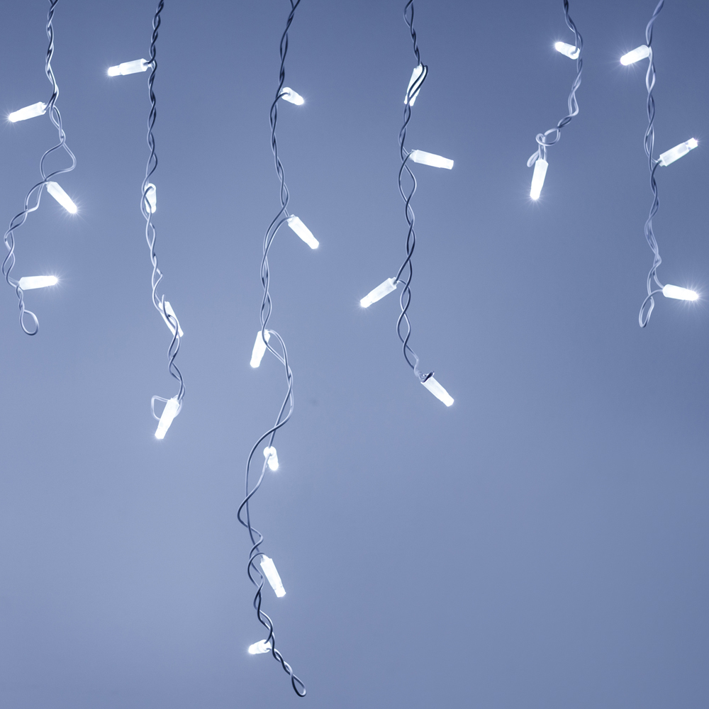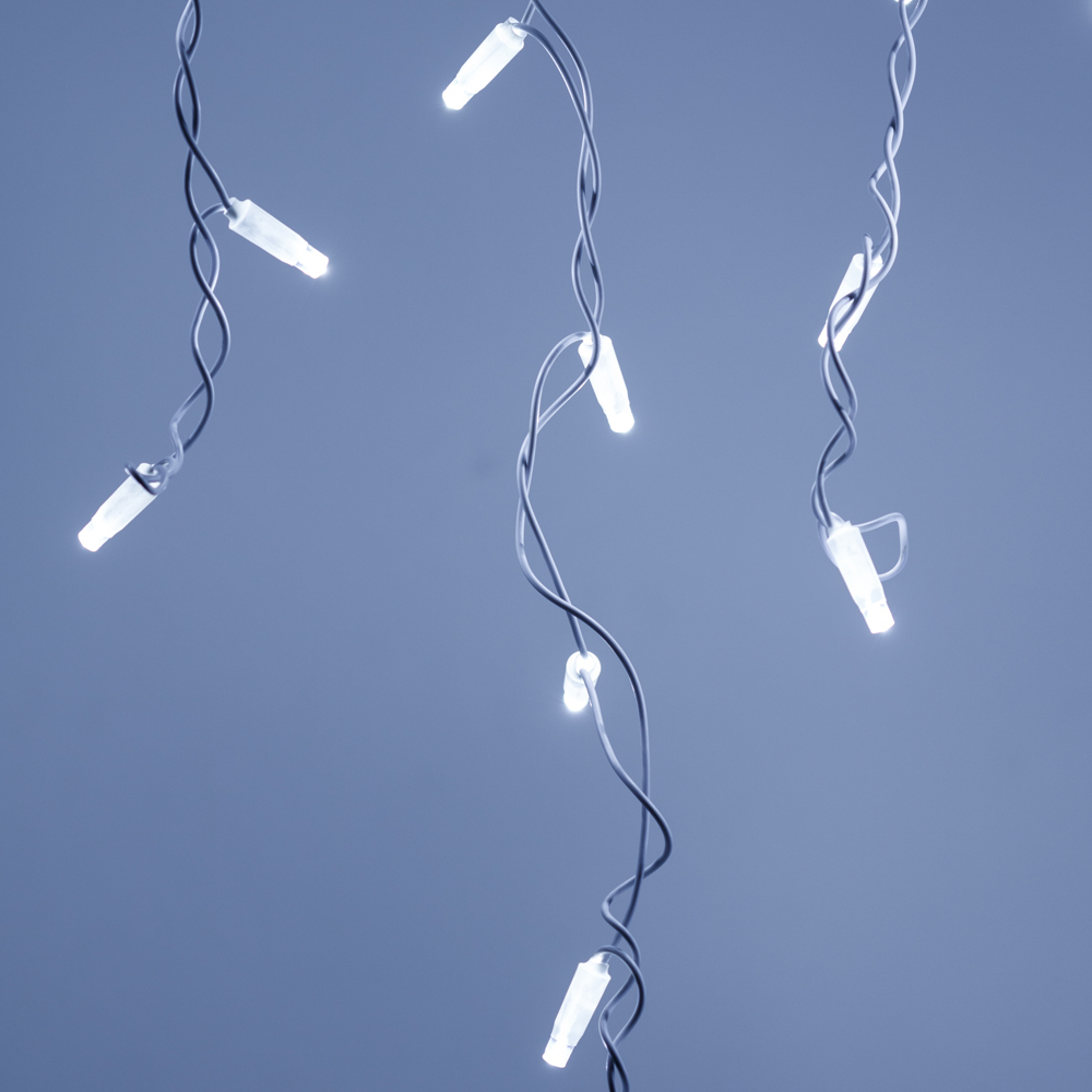 Светодиодная бахрома Pro. Размер 4000 мм (длина 4000 мм, по длине 32 нити высотой 200/600 мм). Количество светодиодов 128 шт размером 7 мм. Основной цвет свечения БЕЛЫЙ (6000 К), эффект мерцания редких точек БЕЛЫЙ (6000К) с мягким световым рисунком (выпуклая молочно-белая линза), соотношение светодиодов: 106 теплых постоянного свечения / 22 белых с мерцанием. Эффект частого мерцания. Провод белый, каучук. Питание 230 В, Мощность 6 Вт, защита IP65, применение на улице под навесом. Аксессуары для подключения приобретаются отдельно.