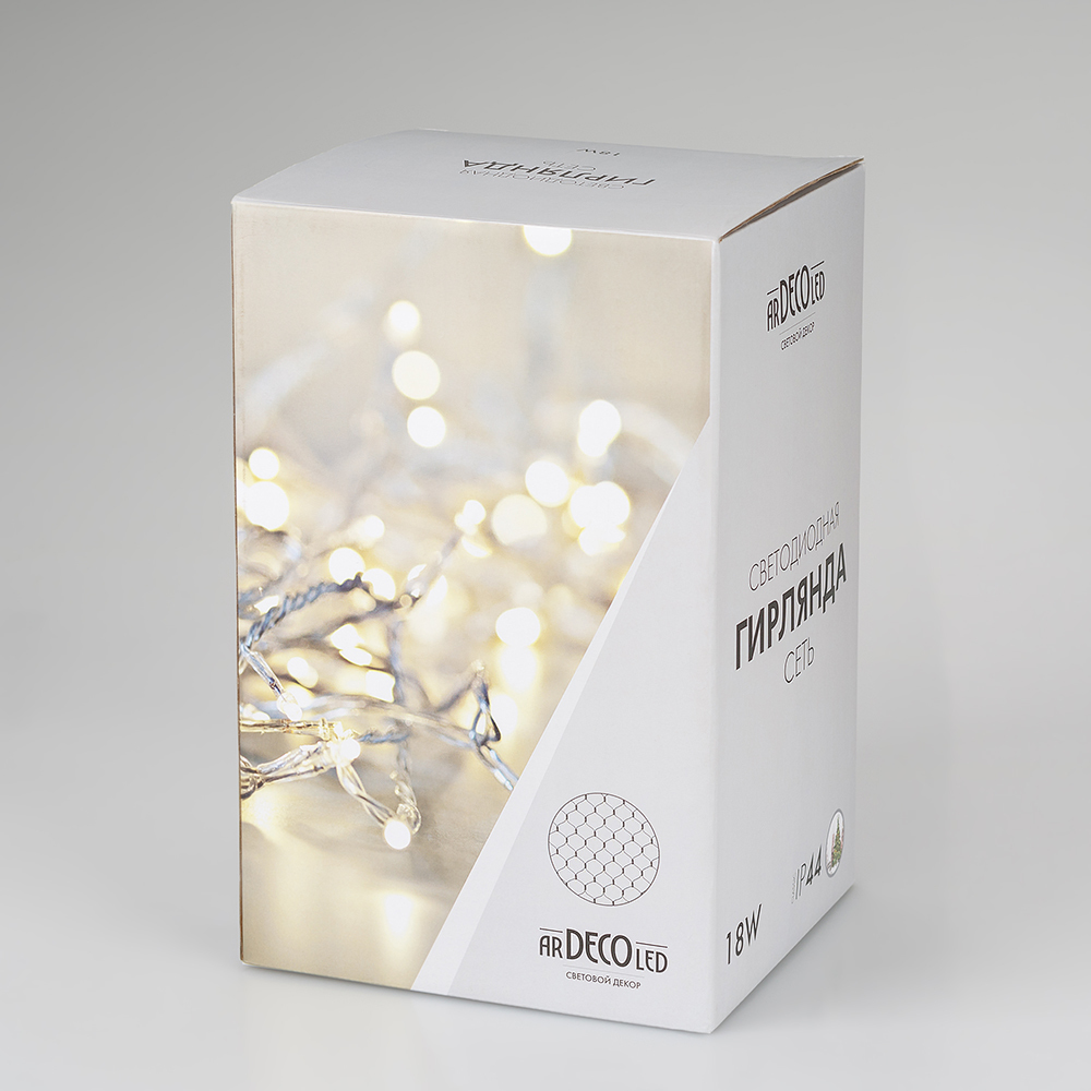 Светодиодная сеть Classic. 2000x1500 (длина 2000 мм, высота 1500 мм). Цвет свечения RGBY (светодиоды чередуются). 288 светодиодов размером 7 мм со статическим и 8 динамическими эффектами свечения с резким световым рисунком (прозрачная вогнутая линза). Провод черный, ПВХ. Питание 230 В, Мощность 18 Вт,защита IP65, применение в помещении и на улице под навесом Аксессуары для подключения и выбора режима свечения в комплекте.
