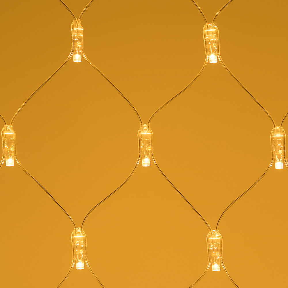 Светодиодная сеть Classic. 2000x1500 (длина 2000 мм, высота 1500 мм). Цвет свечения БЕЛЫЙ (3000 К). 288 светодиодов размером 7 мм со статическим и 8 динамическими эффектами свечения с резким световым рисунком (прозрачная вогнутая линза). Провод прозрачный, ПВХ. Питание 230 В, Мощность 18 Вт,защита IP65, применение в помещении и на улице под навесом Аксессуары для подключения и выбора режима свечения в комплекте.
