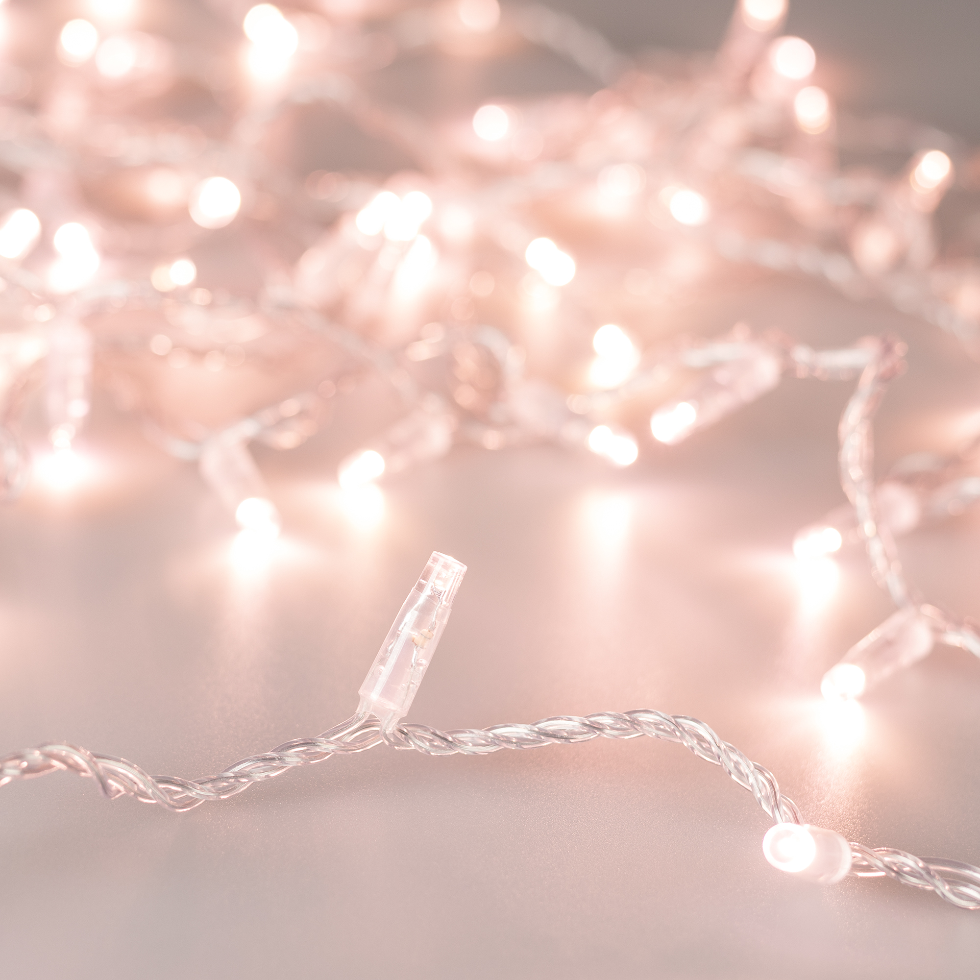 Светодиодная нить Classic. Размер 10000 мм. Цвет свечения РОЗОВОЕ ЗОЛОТО. 100 светодиодов размером 7 мм с эффектом медленного мерцания каждого светодиода с резким световым рисунком (прозрачная вогнутая линза). Провод прозрачный, ПВХ. Питание 230 В, Мощность 7 Вт, защита IP65, применение в помещении и на улице под навесом. Аксессуары для подключения и управления приобретаются отдельно.