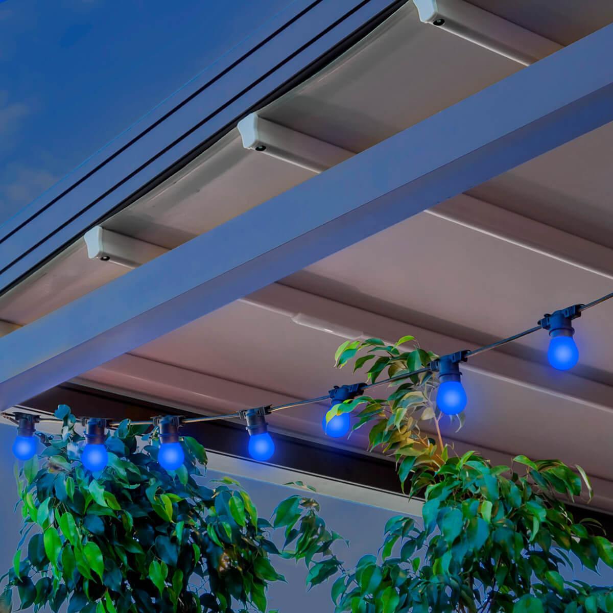 Белт-лайт с синей матовой колбой - специально подготовленный комплект 8м с уже установленными светодиодными лампами. Теперь для создания атмосферу не потребуется много времени, так как у вас есть готовое решение. Останется только повесить и включить в сеть 220В. Шаг ламп 50 см. Лампа предназначена для внутреннего и внешнего применения в праздничной, архитектурной подсветке зданий, мостов, пролётов между столбами и уличной иллюминации.