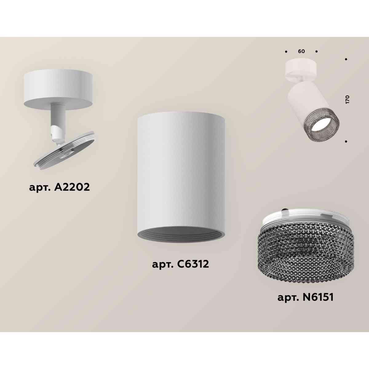 Комплект накладного светильника Ambrella light Techno Spot XM6312002 SWH/BK белый песок/тонированный (A2202, C6312, N6151) от производителя Ambrella Light. Артикул производителя AMBRELLA_XM6312002.