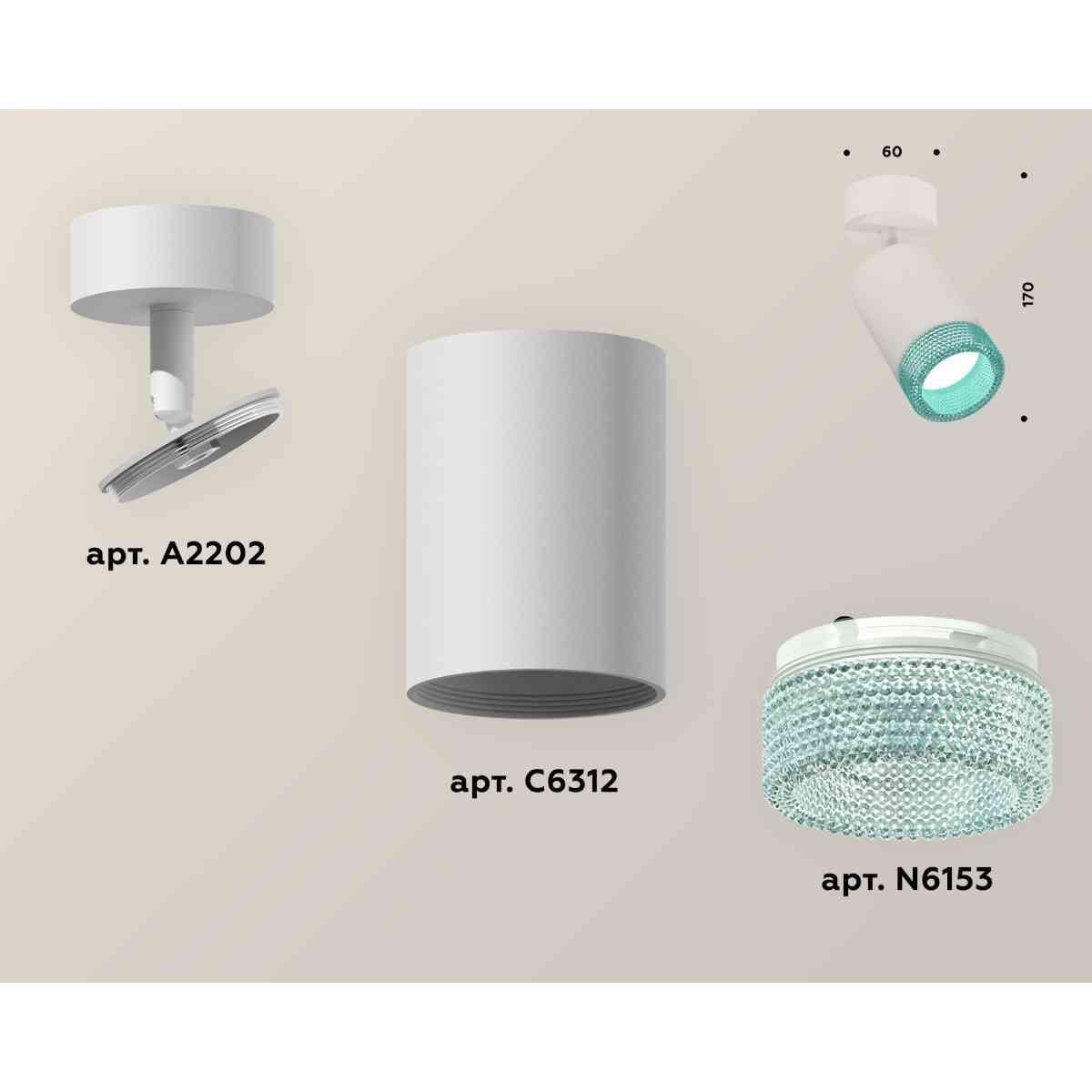 Комплект накладного светильника Ambrella light Techno Spot XM6312004 SWH/BL белый песок/голубой (A2202, C6312, N6153) от производителя Ambrella Light. Артикул производителя AMBRELLA_XM6312004.