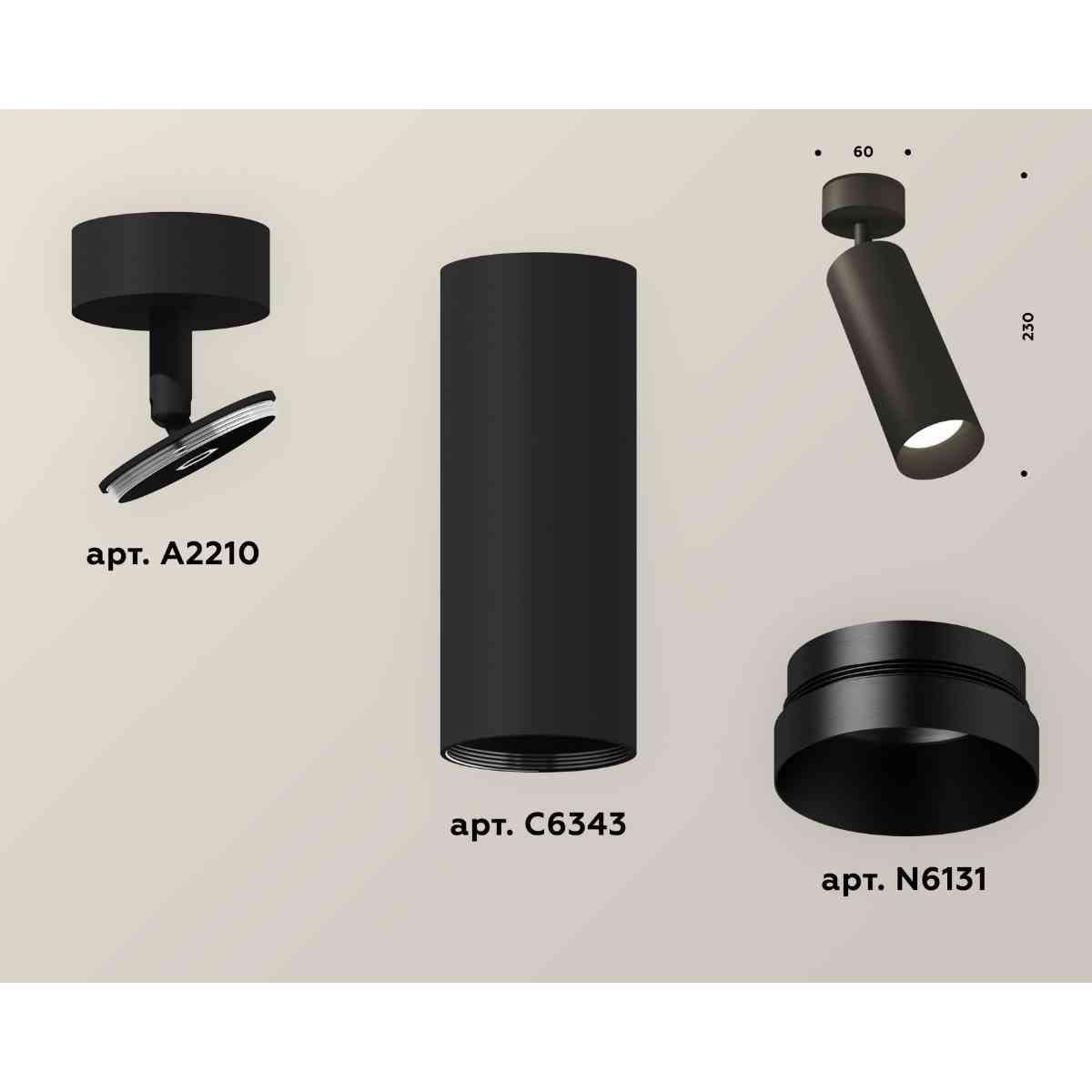 Комплект накладного светильника Ambrella light Techno Spot XM6343002 SBK/PBK черный песок/черный полированный (A2210, C6343, N6131) от производителя Ambrella Light. Артикул производителя AMBRELLA_XM6343002.