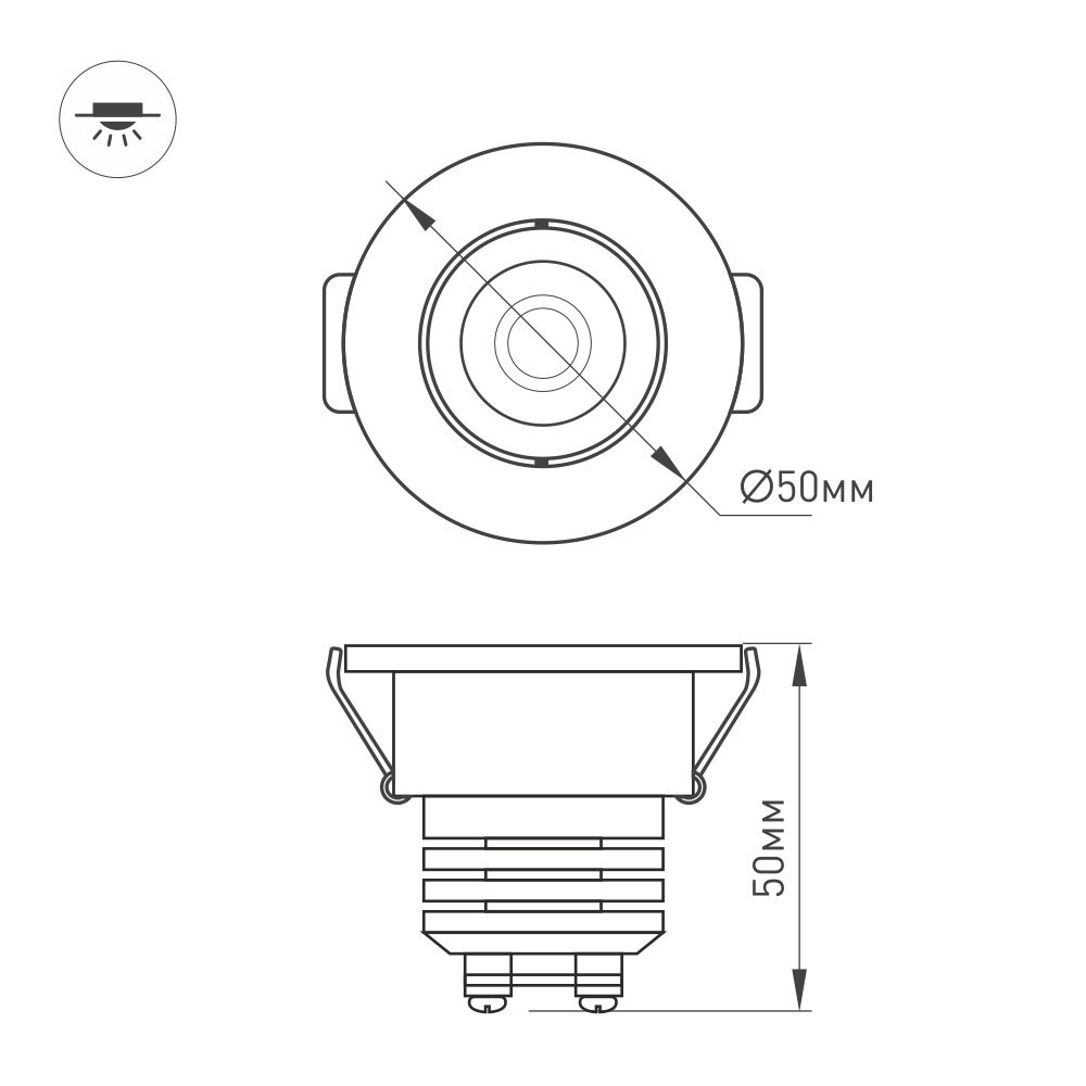Компактный врезной мебельный светильник LTM-R50WH 5W Warm White 25deg мощностью 5 Вт с теплым белым цветом свечения (3000 К) для встраивания в мебель, гипсокартонные конструкции и другие поверхности в жилых и общественных помещениях. Светильник с углом излучения 25°, световым потоком 350–400 лм и индексом цветопередачи CRI>80. Легко монтируется в установочное отверстие диаметром 45 мм с помощью пружин. Драйвер для подключения поставляется в комплекте. Возможна регулировка яркости после замены штатного драйвера на диммируемый.