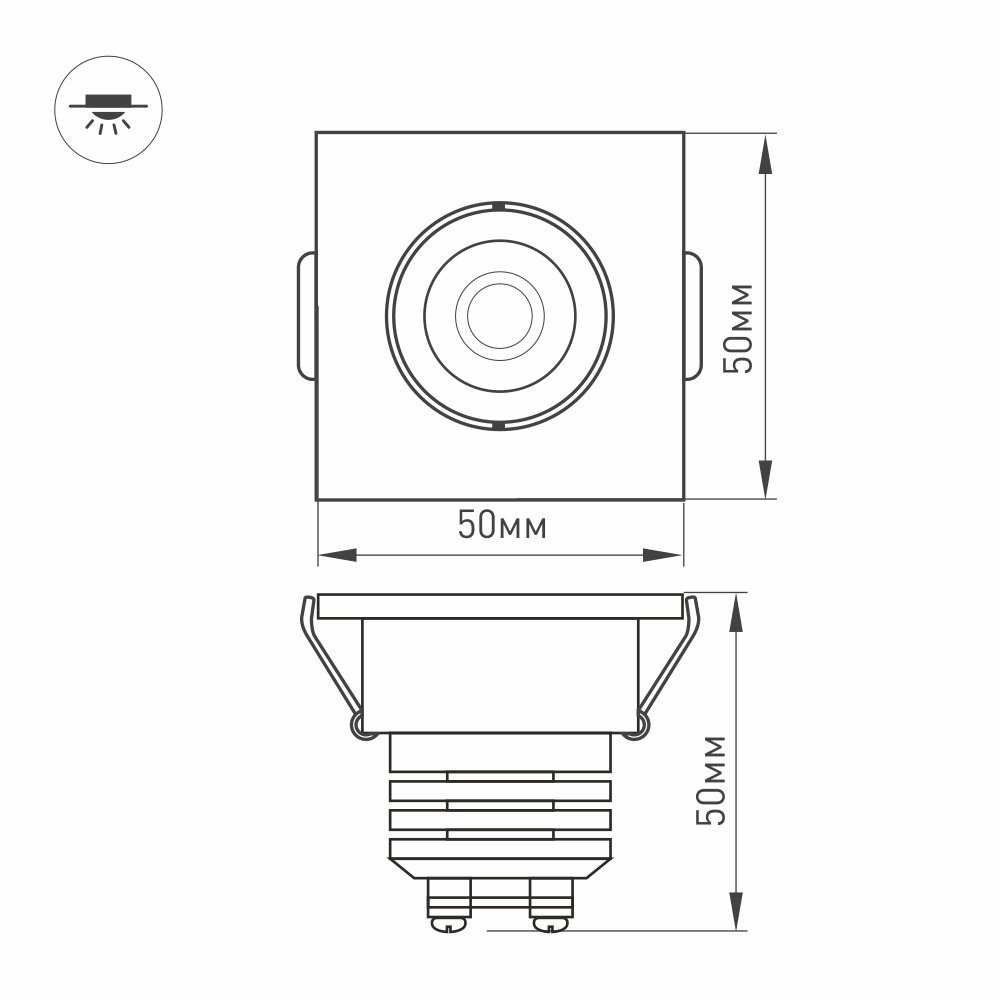 Компактный врезной мебельный светильник LTM-S50x50WH 5W Day White 25deg мощностью 5 Вт с дневным белым цветом свечения (4000 К) для встраивания в мебель, гипсокартонные конструкции и другие поверхности в жилых и общественных помещениях. Светильник с углом излучения 25°, световым потоком 350–400 лм и индексом цветопередачи CRI>80. Легко монтируется в установочное отверстие диаметром 42 мм с помощью пружин. Драйвер для подключения поставляется в комплекте. Возможна регулировка яркости после замены штатного драйвера на диммируемый.
