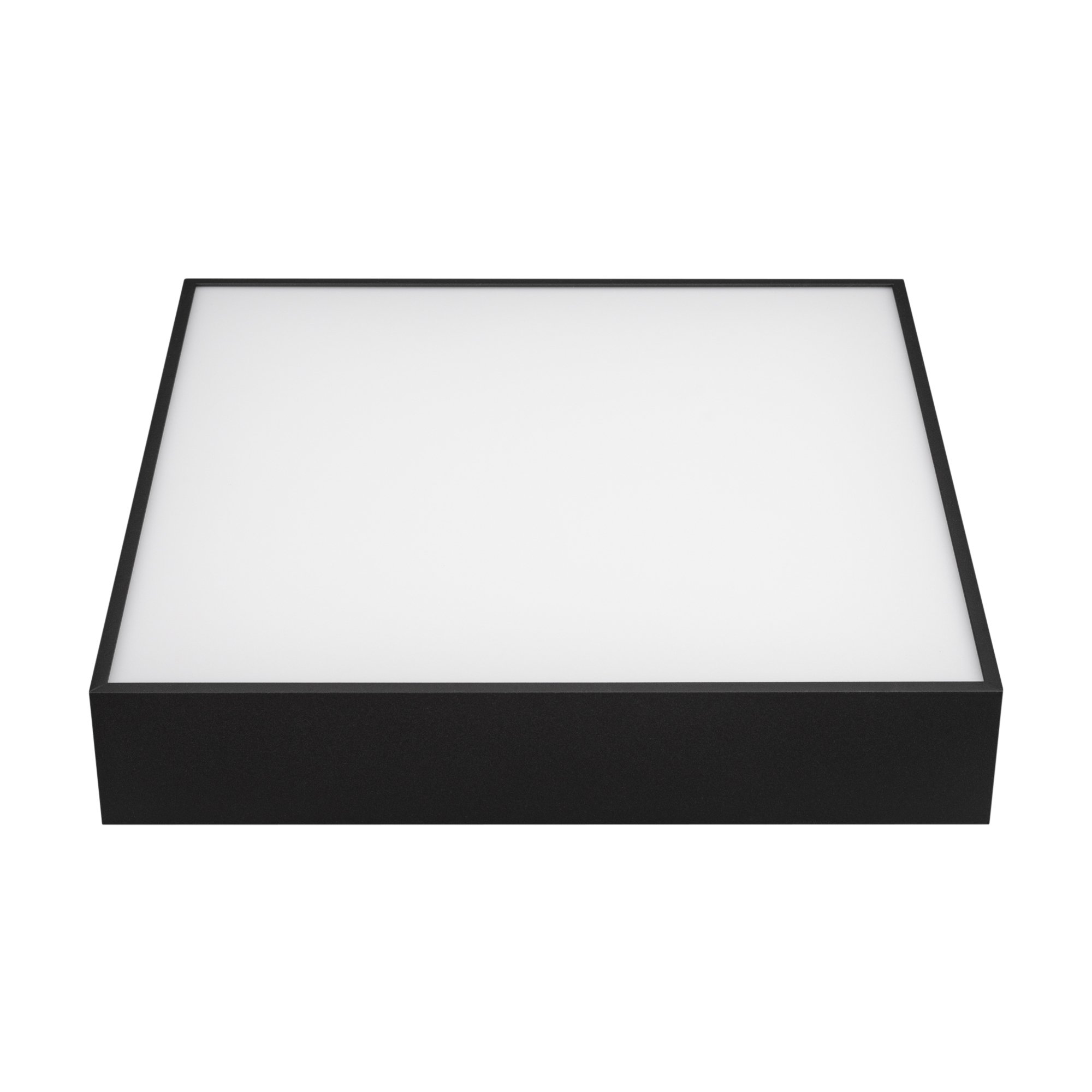 Поставка под заказ от 100 шт. Накладной светильник. Мощность 30 Вт, св. поток 2000-2540 лм, 85 лм/Вт, дневной 4000 K, CRI>90, угол 120°, напряжение питания 230 В. Черный квадратный корпус из алюминия, экран PC, степень защиты IP40. Размер: длина 350 мм, ширина 350 мм, высота 64 мм. Монтаж накладной. Драйвер 27-42 В, 800 мА, пульсация <5%.