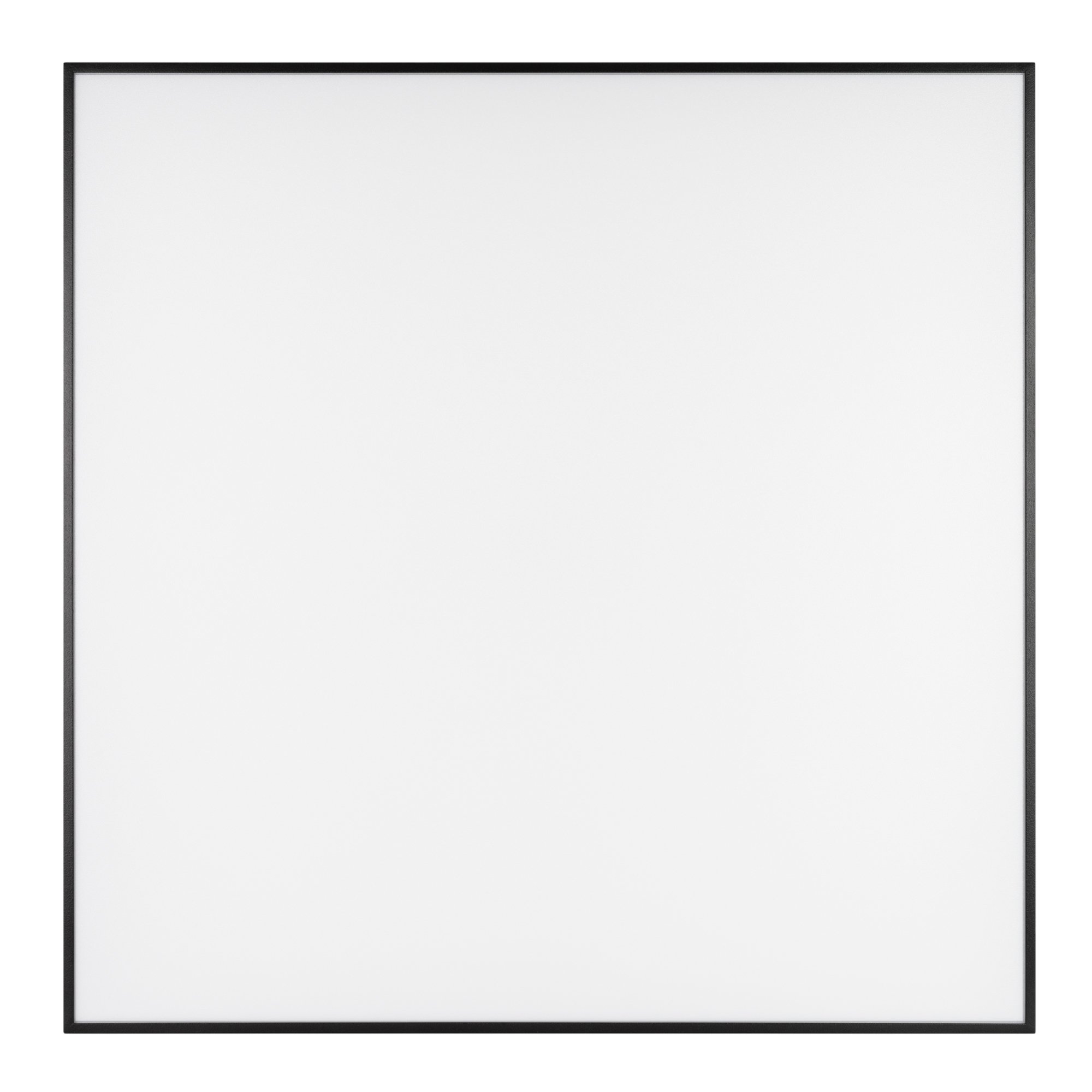 Накладной светильник. Мощность 60 Вт, св. поток 4900-5500 лм, 80-90 лм/Вт, дневной 4000 K, CRI>90, угол 120°, напряжение питания 230 В. Черный квадратный корпус из алюминия, экран PC, степень защиты IP40. Размер: длина 600 мм, ширина 600 мм, высота 64 мм. Монтаж накладной. Драйвер 27-40 В, 1400 мА, пульсация <5%.