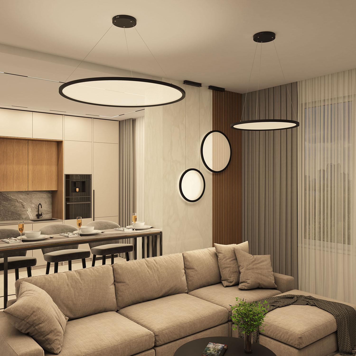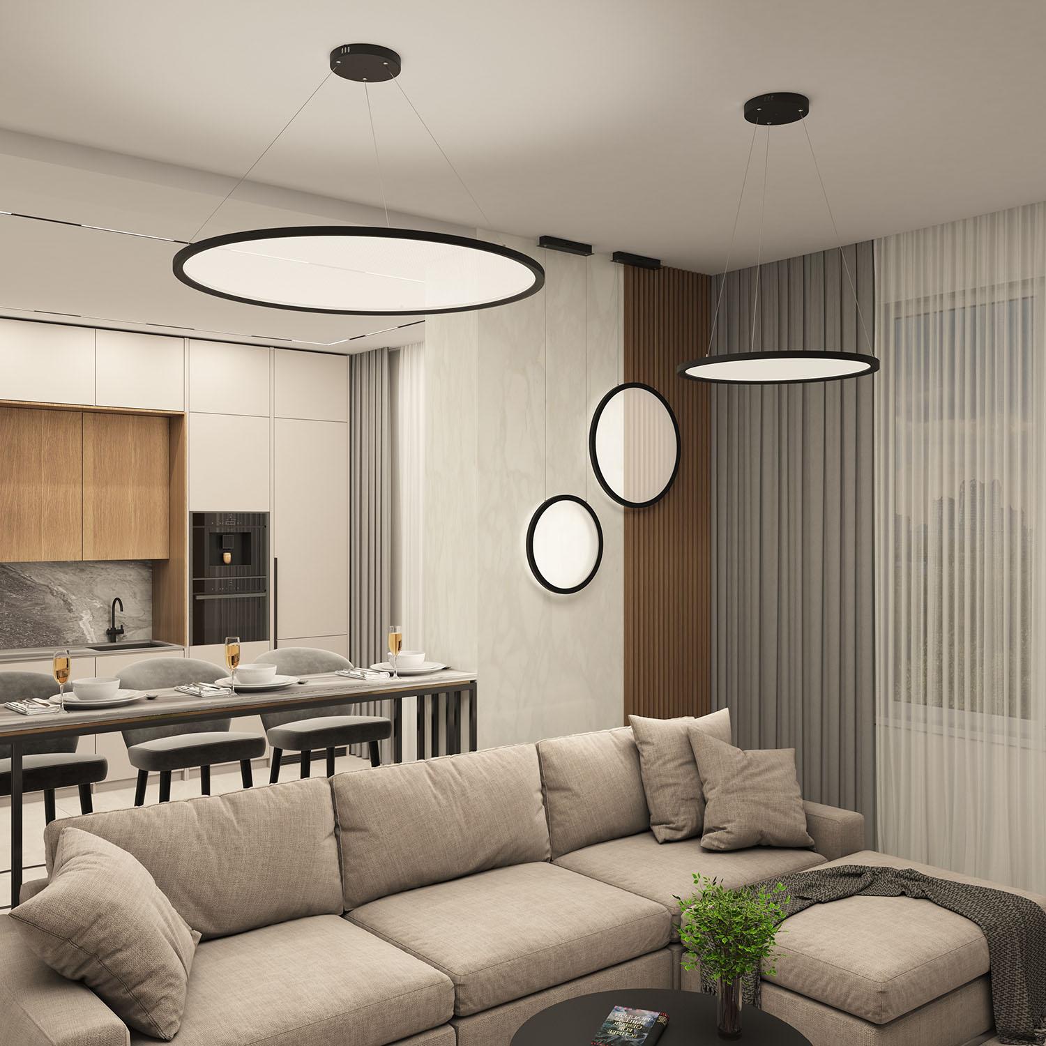 Подвесной горизонтальный светильник Veil со светорассеивателем из оргстекла с эффектом \\светящейся вуали\\\". В комплекте пульт, который позволяет диммировать светильник, а также менять цветовую температуру от теплой до холодной.\"