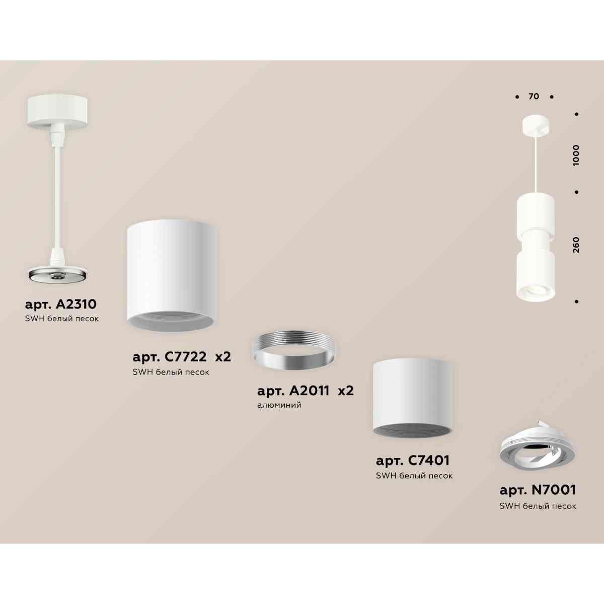 Комплект подвесного светильника Ambrella light Techno Spot XP7722030 SWH белый песок (A2310, C7722,A2011,C7401,A2011,C7722,N7001) от производителя Ambrella Light. Артикул производителя AMBRELLA_XP7722030.