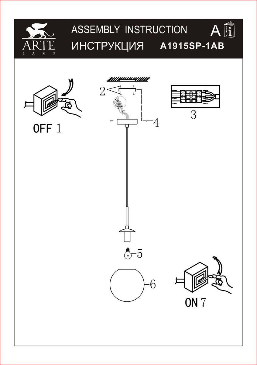 Подвесной светильник Arte Lamp Volare A1915SP-1AB от производителя Arte Lamp. Артикул производителя ARTELAMP_A1915SP-1AB.
