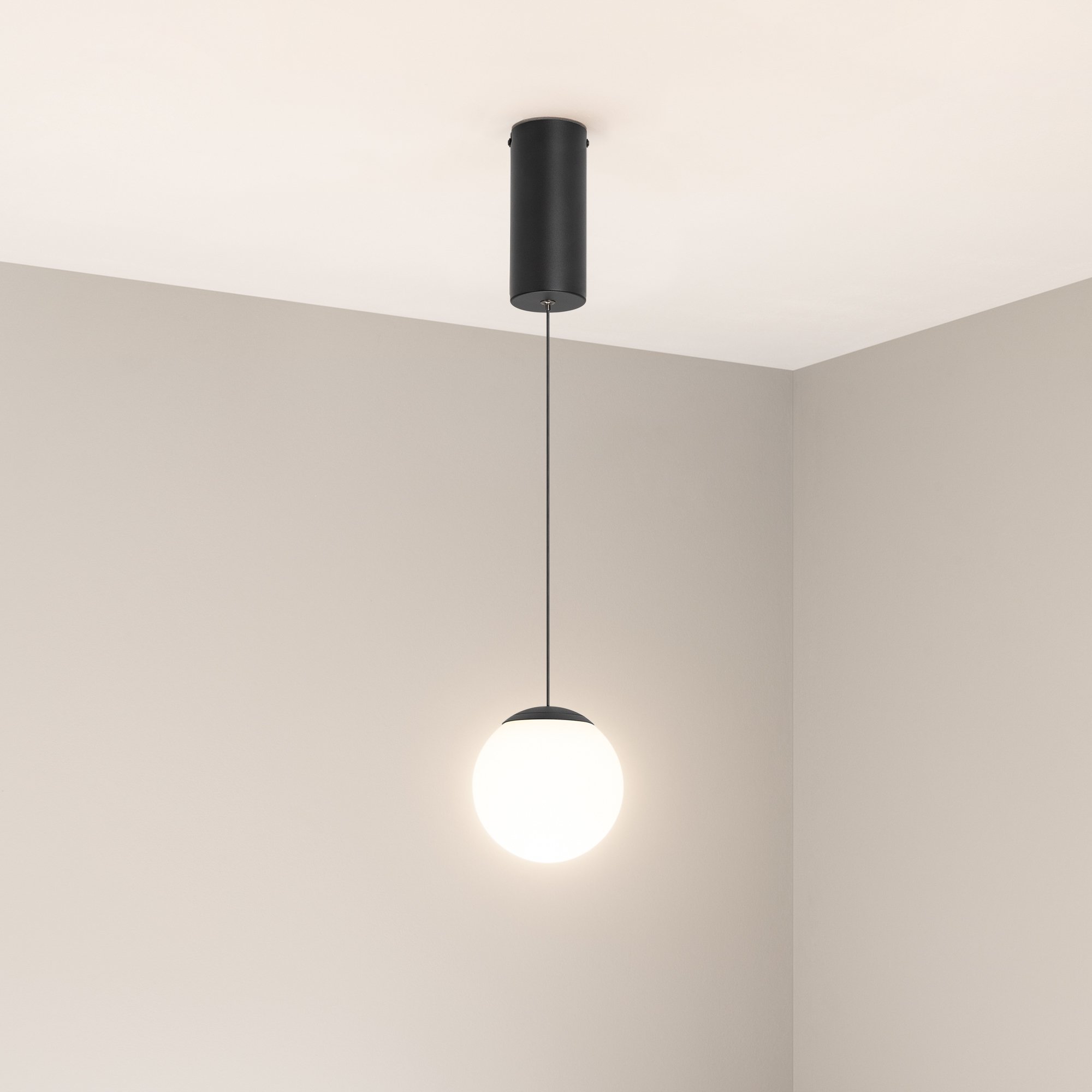 Подвесной светильник. Мощность 10 Вт, св. поток 720 лм, 70 лм/Вт, дневной 4000 K, CRI>90, угол 250°, напряжение питания 230 В. Черный круглый корпус из алюминия и стали, рассеиватель стекло, степень защиты IP20. Размер: диаметр 130 мм, размер чаши: диаметр 70 мм, высота 160 мм. Монтаж подвесной, длина подвеса 1350 мм. Драйвер 6-14 В, 600 мА, пульсация <1%.