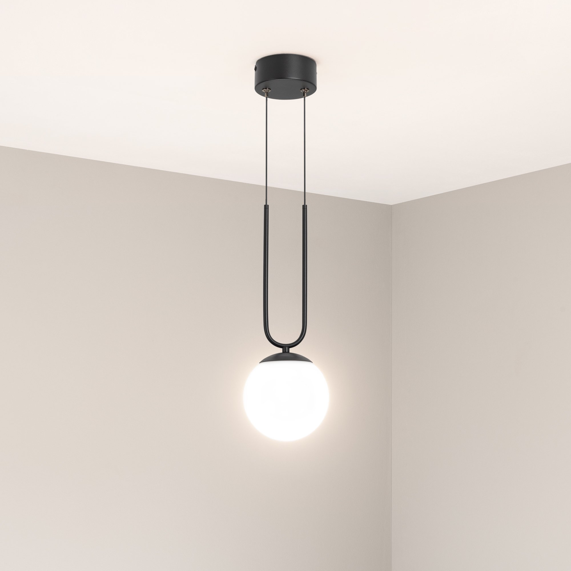 Декоративный подвесной светильник мощностью 10 Вт с дневным белым цветом свечения (4000 К). Дизайн светильника напоминает изящное украшение с жемчугом. Черный корпус с черной вставкой на регулируемом подвесе длиной 1140 мм. Диаметр светового модуля 130 мм. Высокий индекс цветопередачи (CRI>90) и световой поток 710 лм для качественного декоративного освещения. Минимальный коэффициент пульсации (менее 1%) гарантирует зрительный комфорт. Драйвер в комплекте для подключения к сети 230 В.