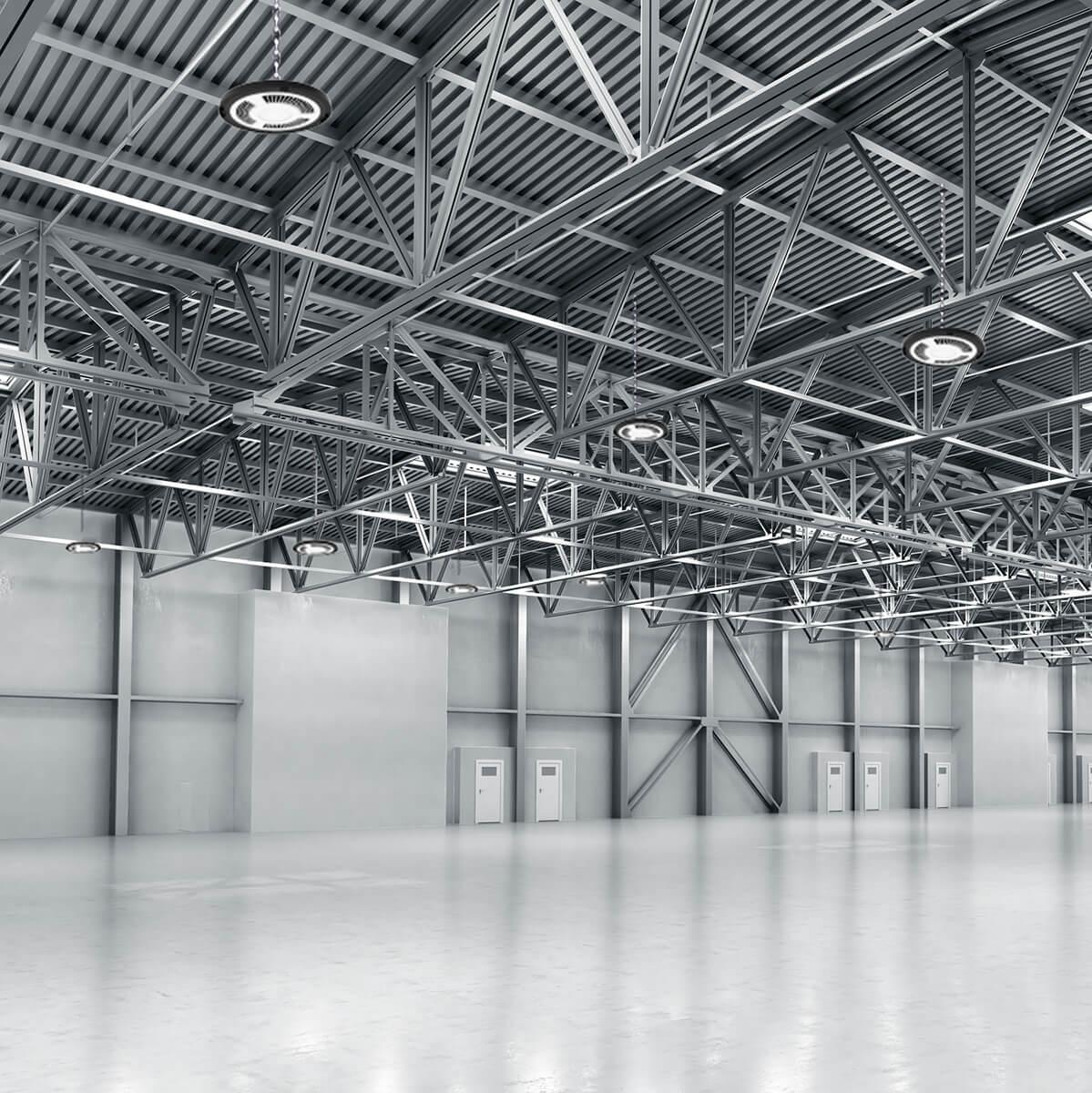 Светодиодные светильники серии UFO с нейтральным белым цветом свечения 5000K идеально подойдут для освещения помещений с высокими потолками, таких как: производственные цеха, склады, ангары и выставочные павильоны. Можно не беспокоиться об освещении помещений с высоким уровнем пыли и влаги, т.к. данные светильники имеют степень защиты IP65 и рабочий диапазон температуры окружающей среды от -30 до 45С.Уникальное отличие данной модели – монтажная скоба, которая идет в комплекте со светильником. Благодаря этому у вас появляется возможность крепления светильника не только на трос, но и на стену или потолок.Отсутствие пульсации, высокая светоотдача 120Лм/Вт и удобство монтажа делают светильники серии UFO универсальным помощником для освещения промышленных объектов.