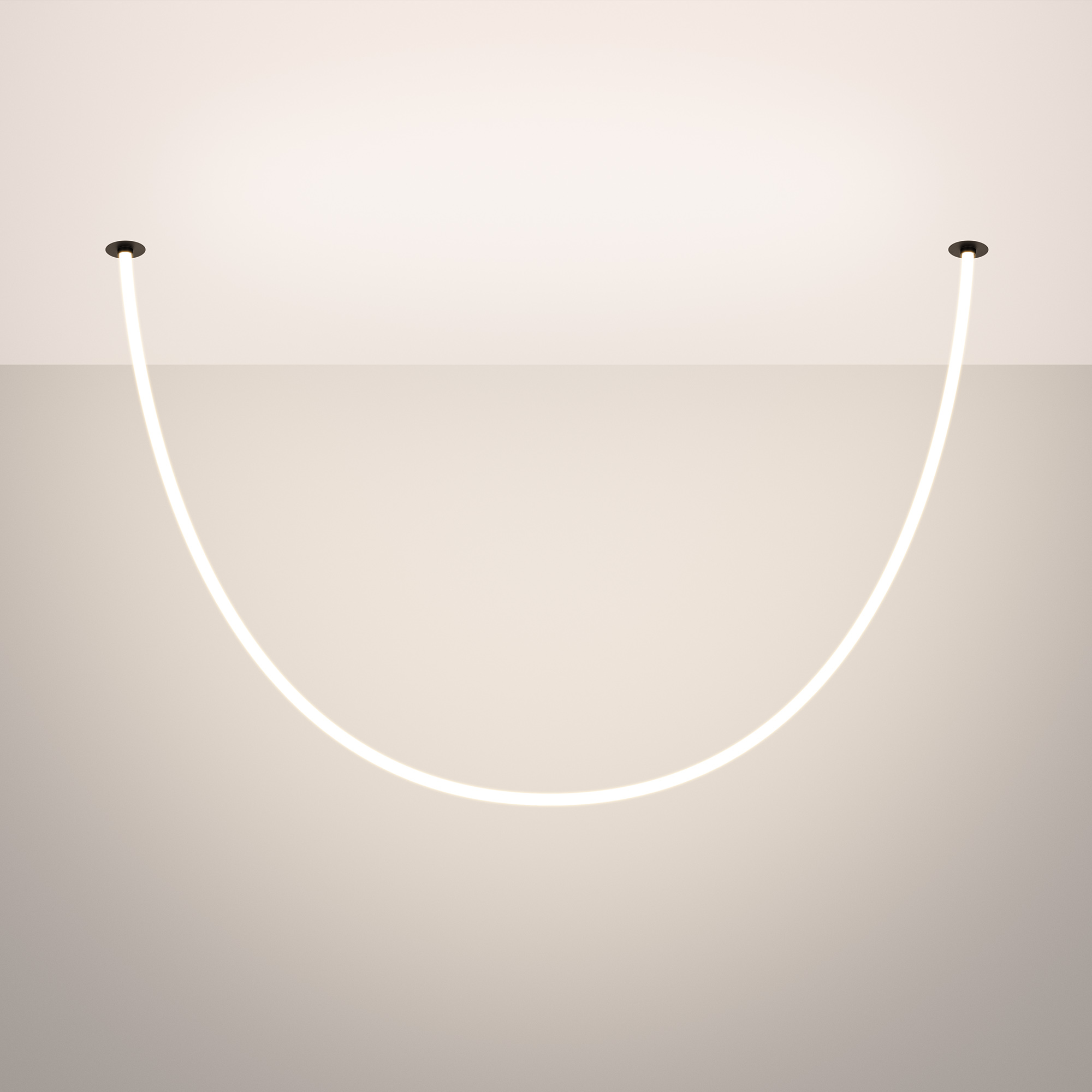 Подвесной светильник. Мощность 36 Вт, св. поток 2080 лм, 57 лм/Вт, тёплый 3000 K, CRI>90, угол 360°, напряжение питания 230 В. Черный круглый корпус из стали, силиконовая герметичная лента, степень защиты IP20. Размер: диаметр утапливаемой части чаши 64 мм, высота чаши с утапливаемой частью без вывода под неон 40 мм, общая высота чаши 57 мм, диаметр чаши с фланцем 100 мм, диаметр силиконовой герметичной ленты 18 мм, длина силиконовой герметичной ленты 2500 мм. Монтаж встраиваемый, глубина установки 55 мм, диаметр установочного отверстия 70 мм. Блок питания 24 В, 1880 мА, пульсация <1%.