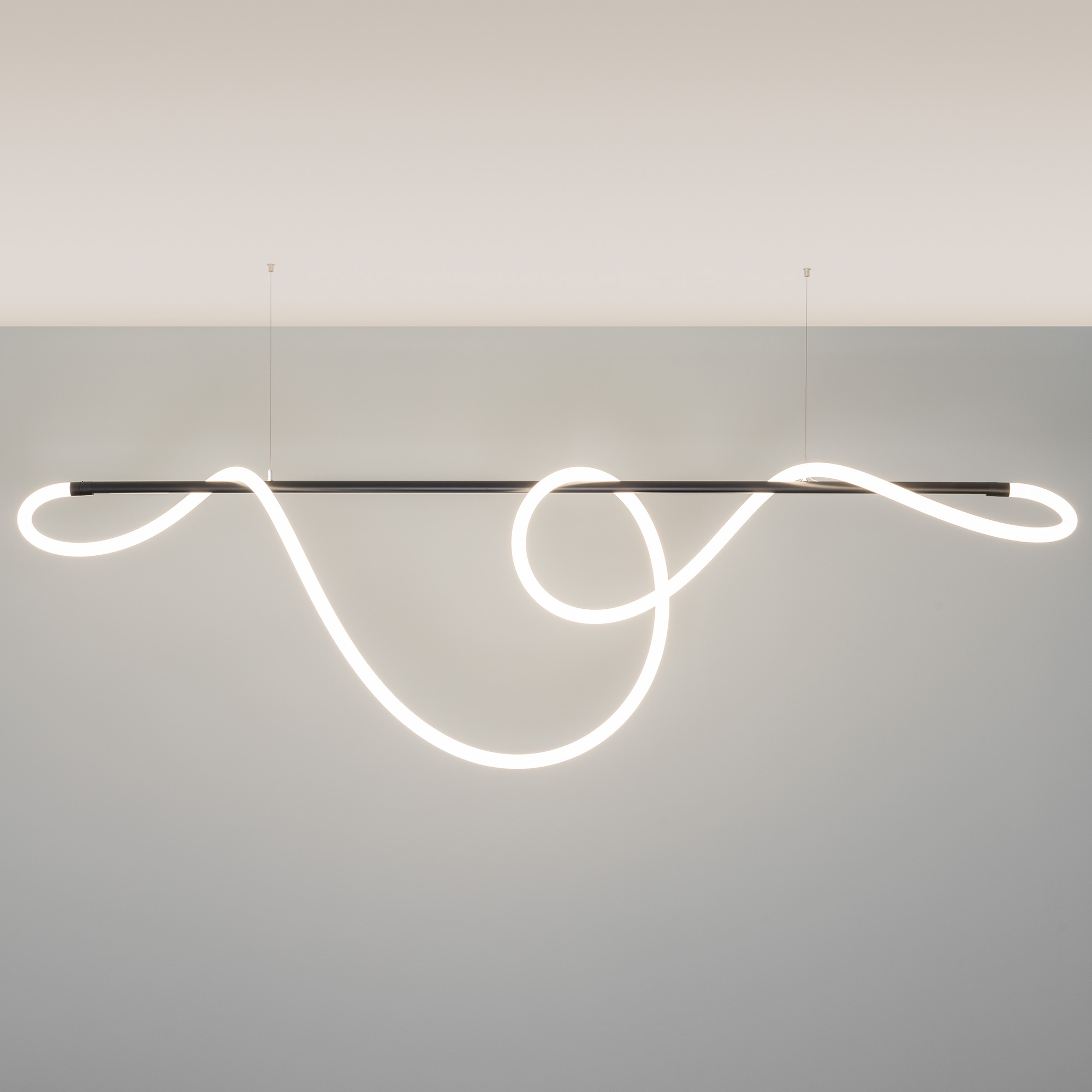 Подвесной светодиодный светильник SP-TROPIC-HANG-L5000-70W Day4000 (BK, 360 deg, 48V) мощностью 70 Вт с уникальным корпусом из гибкого неона диаметром 25 мм. Высокая световая эффективность 67 лм/Вт, индекс цветопередачи CRI>90, световой поток 4700 лм и сверх широкий угол излучения 360° обеспечивают качественное освещение с точной передачей цветовых оттенков, что удовлетворяет требованиям большинства проектов. Силиконовый материал неона обеспечивает мягкое, равномерное освещение дневного белого цвета (4000 К). Тип монтажа - подвесной. Корпус с защитой от пыли IP20 подходит для установки внутри помещений, где нет контакта с водой или другими жидкостями. Комбинируя светильники разного размера данной серии и располагая их на разном уровне, можно создавать оригинальные световые композиции. Пульсация менее 5% обеспечивает комфортное освещение без мерцания. Предназначен для основного и декоративного освещения в жилых, офисных, торговых помещениях, ресторанах, кафе и др.