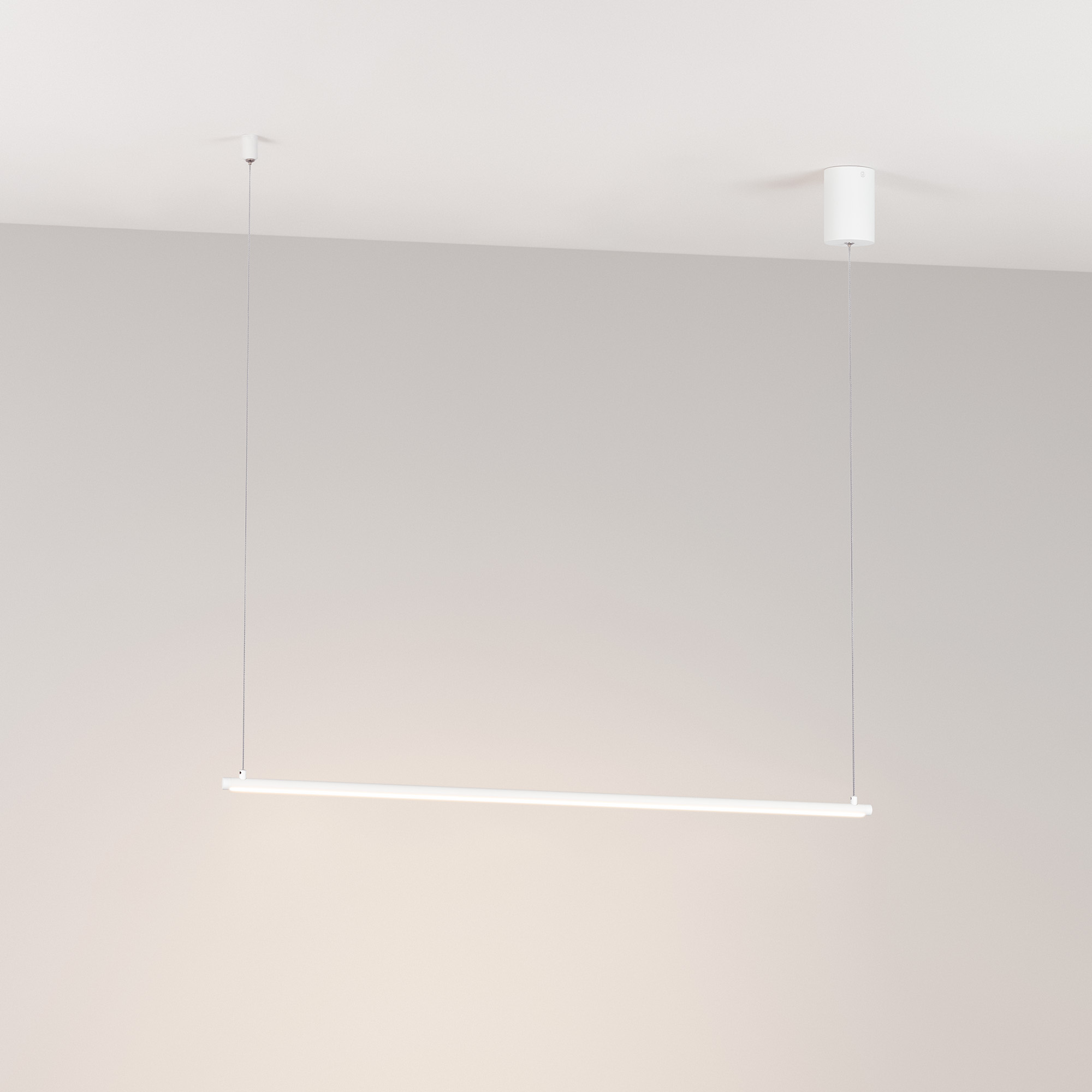 Декоративный подвесной светильник мощностью 15 Вт с дневным белым цветом свечения (4000 К). Сбалансированный минималистичный дизайн и высокая световая эффективность. Горизонтальное свечение вниз. Белый изящный корпус из металла длиной 910 мм на регулируемом тросе. Композиции из нескольких светильников будут стильно смотреться при оформлении спальных зон и гостиных. При размещении светильников возле стены создается эффект отраженного света. Регулируемая длина подвеса позволяет размещать светильники на разной высоте и подстраивать их под высоту потолков. Световой поток 675 лм и высокий индекс цветопередачи (CRI>90) для качественного освещения. Драйвер в комплекте для подключения к сети 230 В.