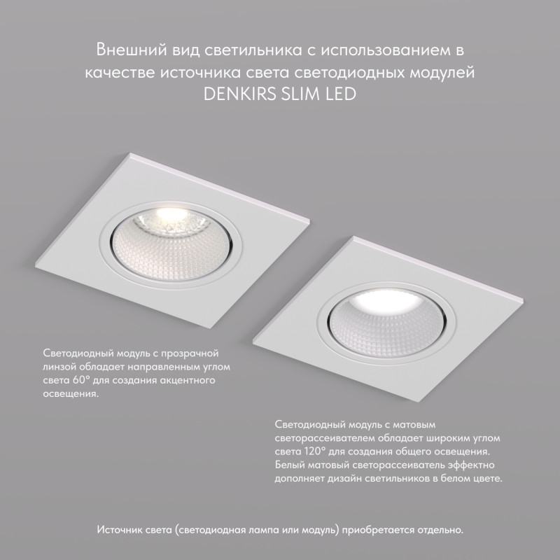 Серия встраиваемых поворотных светильников под сменную лампу из термостойкого полимера, обладающего низкой теплопроводностью. Отличительная особенность серии – рельефный рефлектор, в углублении которого располагается сменная светодиодная лампа. Серия насчитывает большое количество оригинальных цветовых сочетаний на любой вкус. Благодаря лампе, расположенной в углублении корпуса, существенно снижается слепящий эффект. Модель универсальна в своем применении. Светильники из полимера используются только со светодиодными источниками света. Лампа в комплект не входит. Для данной серии рекомендуем ультратонкие модули SLIM LED в качестве источника света, монтажная глубина всего 55 мм. При использовании светодиодной лампы с цоколем GU5.3 монтажная глубина изделия составит 78 мм. В данной серии также представлены накладные и точечные светильникиСветильник предназначен для использования со светодиодной лампой. Установка ламп другого типа не допускается