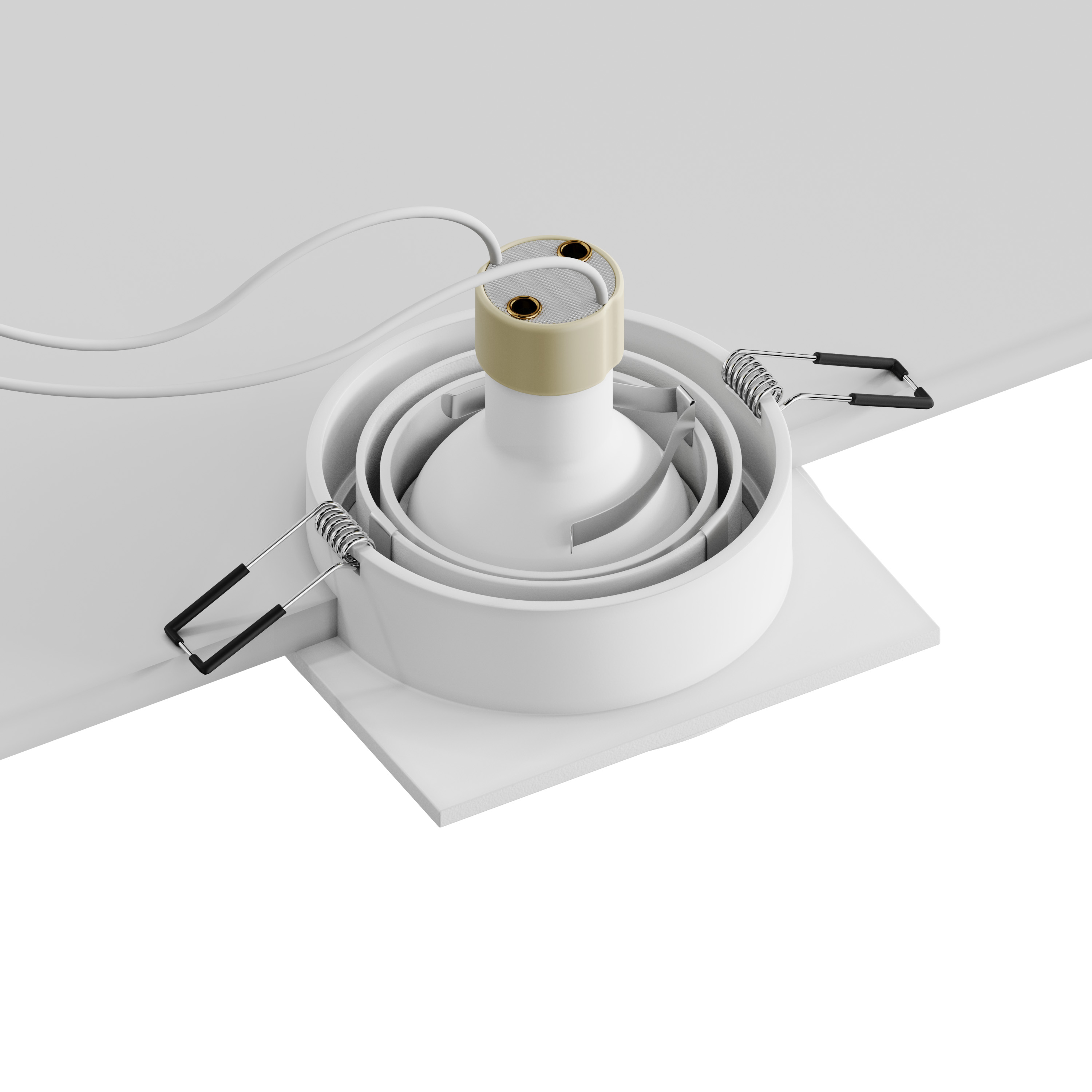 Модель поддерживает лампы с цоколем GU10 (лампа не входит в комплект) и мощность до 50 Вт. Поворотная конструкция позволяет направить свет в нужное место. Установка на прижимных скобах обеспечивает надёжность и простоту. Класс защиты IP20 подходит для использования в сухих помещениях.