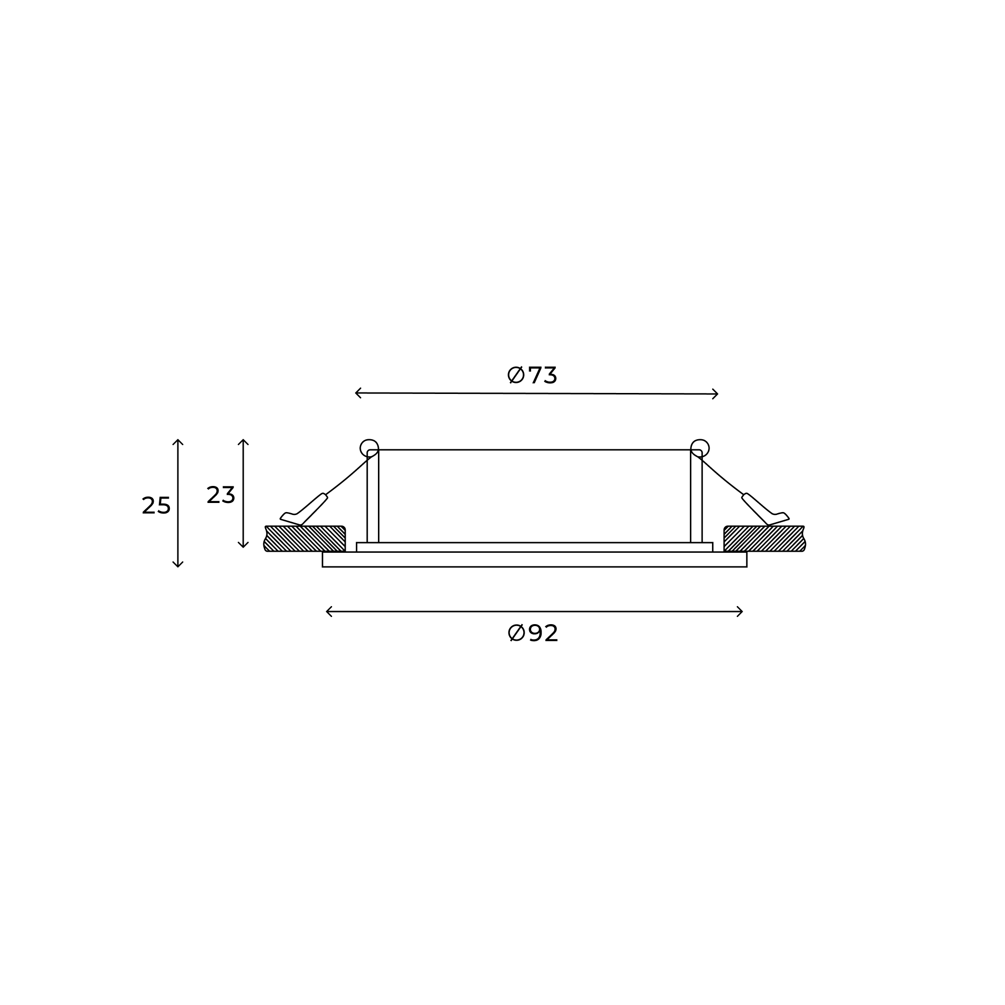 Светильник оснащён цоколем GU10 (лампа не входит в комплект) и поддерживает мощность до 15 Вт, обеспечивая яркое освещение. Надёжное крепление на прижимных скобах упрощает процесс установки. Класс защиты IP20 подходит для использования в сухих помещениях.