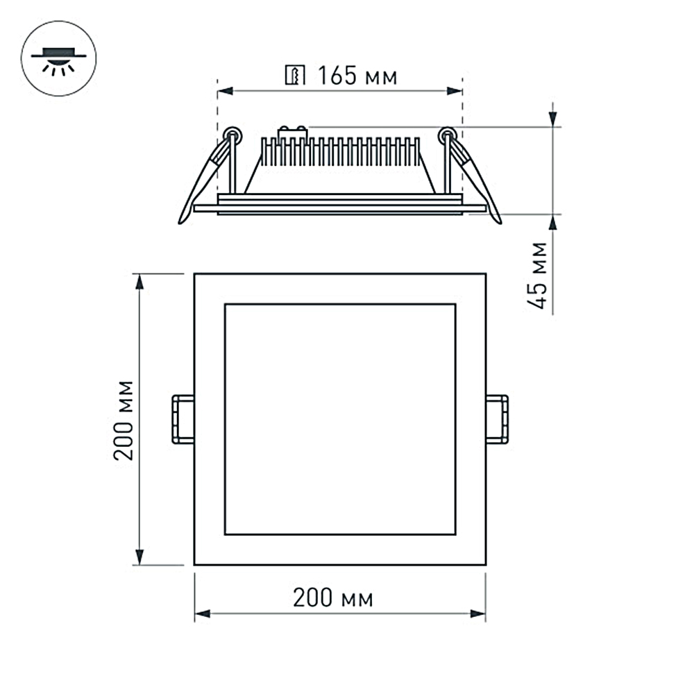 16Вт / ДНЕВНОЙ 4000-4500K / 1250лм / 120°. Размер 200x200x45мм (в отверстие 165x165мм). Стеклянная панель. Корпус квадратный, белый. Питание от сети 230VAC, драйвер в комлекте 300mA 45-65V. Диапазон рабочих температур -10°..+40°C. Для помещений.