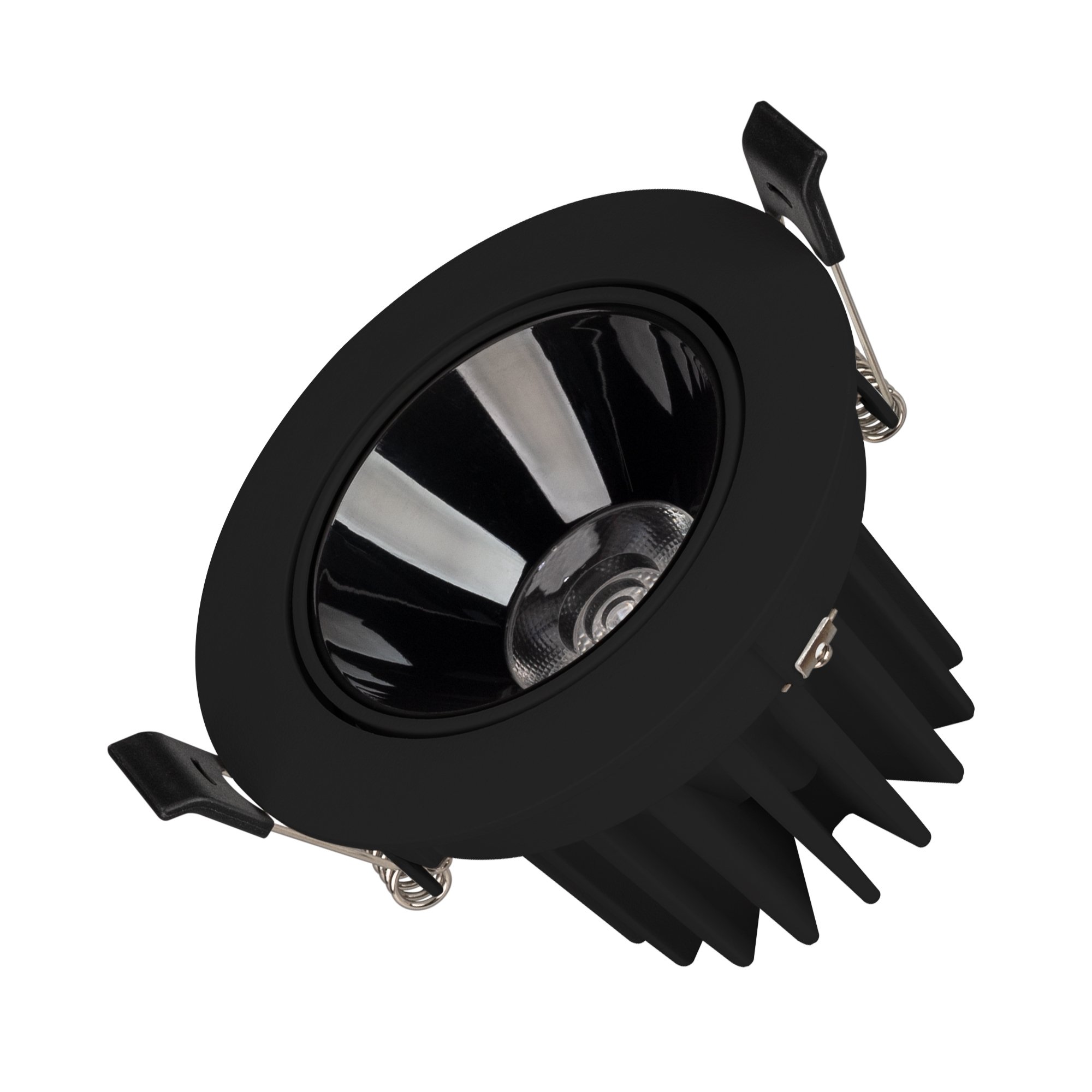 Встраиваемый поворотный светильник даунлайт. Мощность 12 Вт, св. поток 910 лм, 76 лм/Вт, дневной 4000 K, CRI>90, UGR<16, угол 32°, напряжение питания 230 В. Черный круглый корпус из алюминия, черный ГЛЯНЦЕВЫЙ отражатель из PMMA, степень защиты IP20. Размер: диаметр 102 мм, высота 70 мм. Монтаж встраиваемый, установочное отверстие: диаметр 95 мм. Драйвер 20-40 В, 300 мА, пульсация <2%.