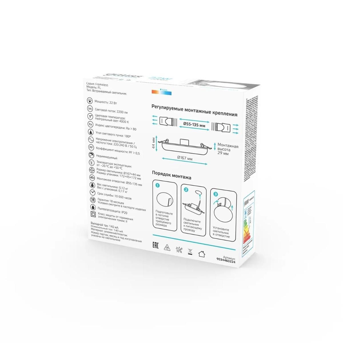Встраиваемый светодиодный светильник Gauss Elementary Adjustable Frameless 9034460224 от производителя Gauss. Артикул производителя GAUSS_9034460224.