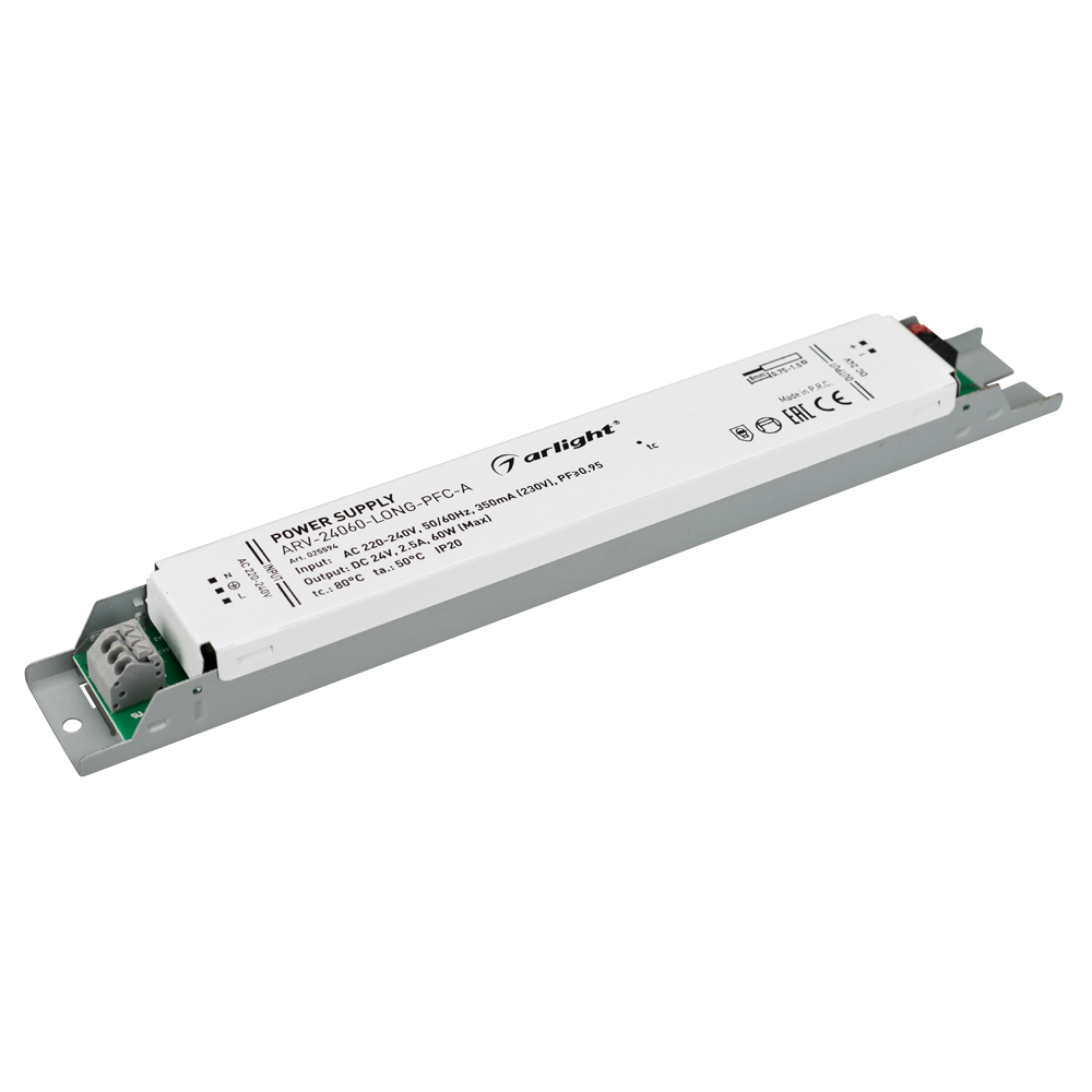 Блок питания 24V, ток 2,5А, 60Вт, с корректором мощности, PF>0,95. Тонкий металлический корпус IP20. Вход: 220-240VAC. Выход: 24VDC 2.5A. Размер 250х30х21 mm. Совместимость со стандартом EMC. Гарантия 5 лет.