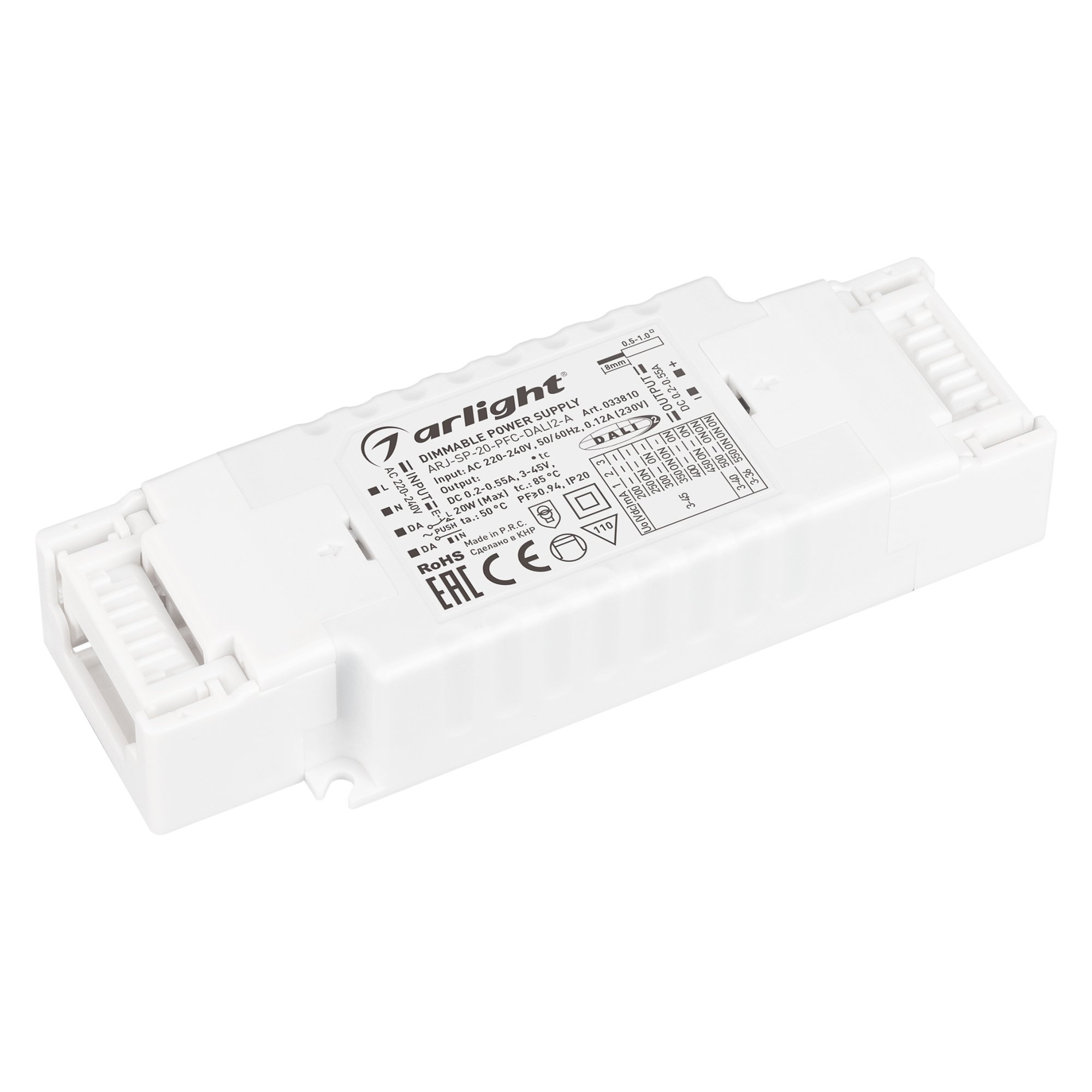 Диммируемый токовый блок питания с управлением DALI 2.0 и функцией Push Dim с гальванической развязкой. Входное напряжение 220-240VAC. Выходные параметры: 3-45В (200/250/300/350/400/450мA), 3-40В (500мA), 3-36В (550мA), максимальная мощность 20Вт. Встроенный PFC >0,94. Габаритные размеры длина 116 мм (78 мм без бок. крышек), ширина 40.5 мм, высота 22 мм. Гарантийный срок 5 лет.