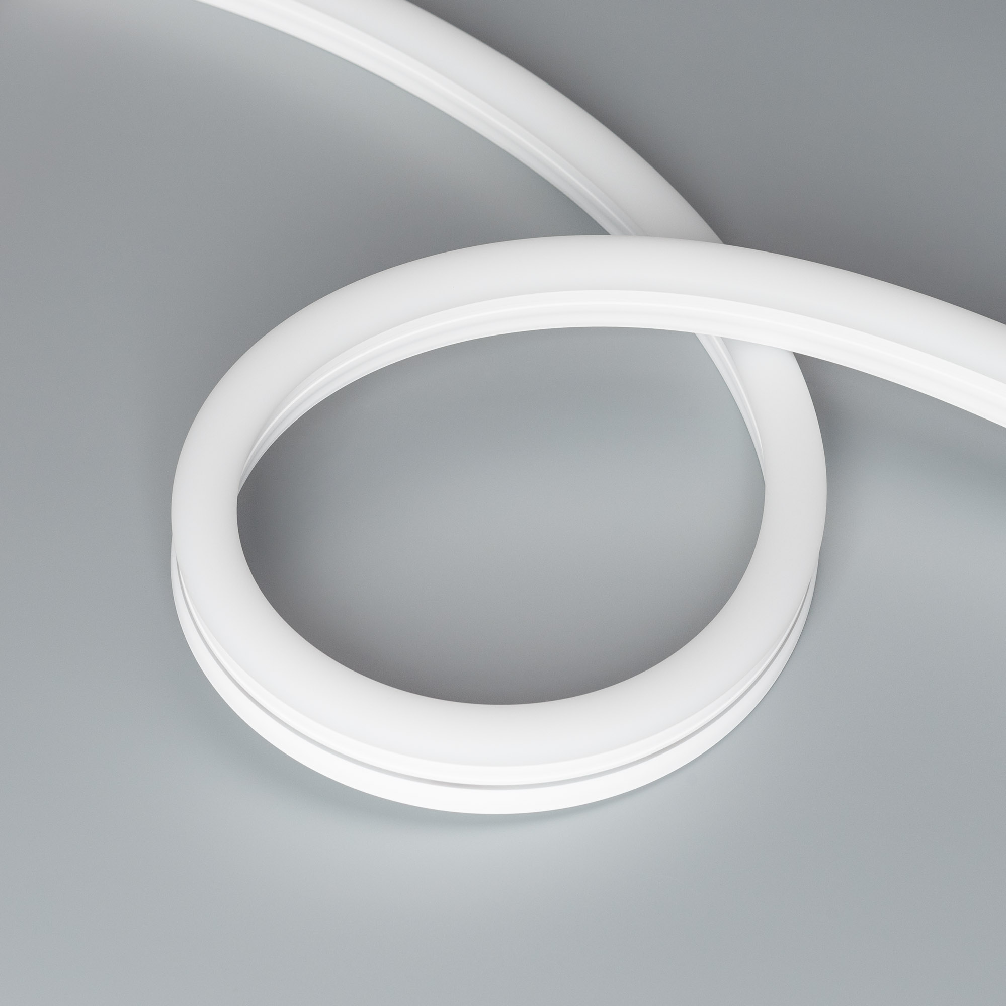 Гибкая герметичная лента (неон серии MOONLIGHT), сечение 12×24 мм. Светодиоды SMD 2835 140 шт/м. Цвет свечения ТЕПЛЫЙ БЕЛЫЙ (2200 К), индекс цветопередачи CRI>80, световой поток 360 лм/м, угол излучения 178°. Мощность 9.6 Вт/м, питание 24 В. Класс пылевлагозащиты IP68. Размеры 5000×12×24 мм. Мин. отрезок 50 мм. Горизонтальный изгиб SIDE, минимальный радиус изгиба 60 мм. Вывод кабеля с двух сторон. Катушка 5 м. Цена за 1 м. Гарантия 3 года.