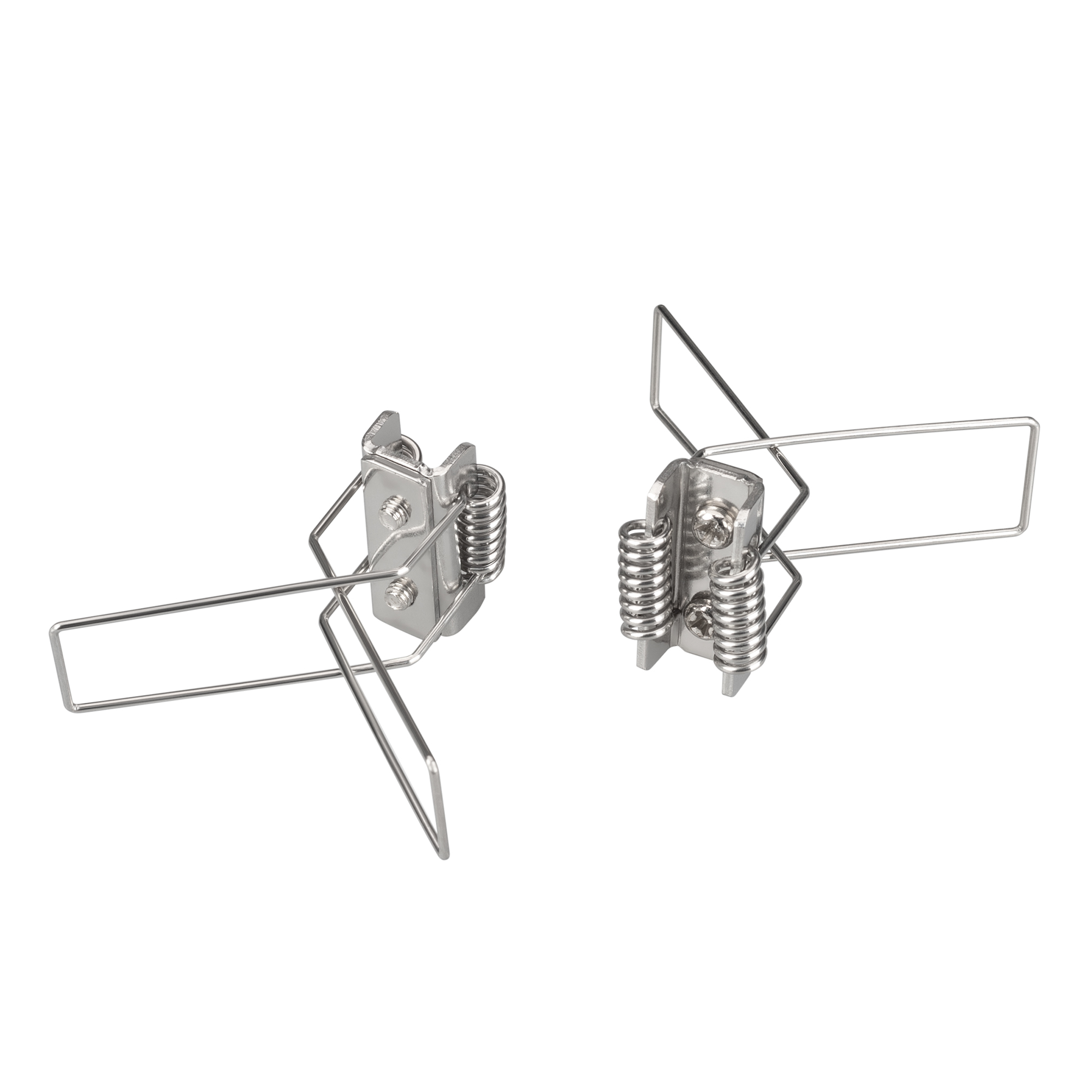 Металлические пружинные держатели (2 шт.) предназначены для установки профиля LINIA49-F-S в подготовленный проем. Пружинный механизм крепежа позволяет легко монтировать/демонтировать профиль, что облегчает установку и дальнейшее обслуживание светильника.