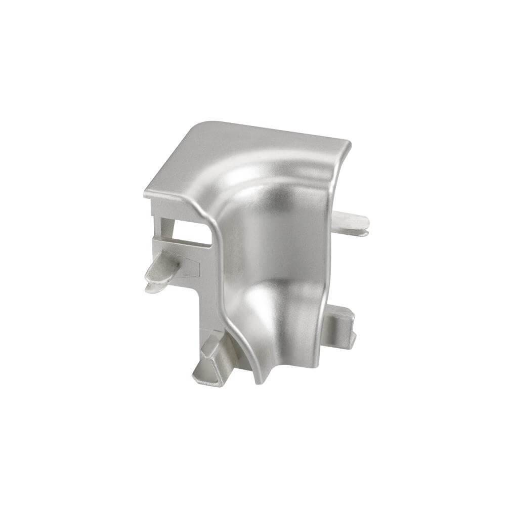 Серебристый угловой пластиковый соединитель (внутренний) для профиля ARH-PLINTUS. Применяется для соединения двух отрезков профиля под углом 90°.