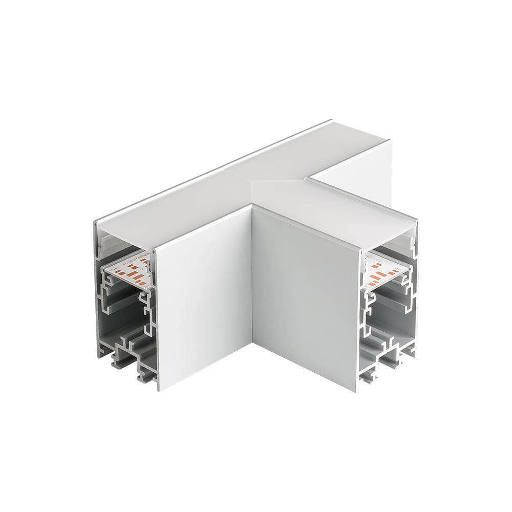 Тройной угол в сборе, для соединения 3-х профилей S2-LINE-4067 под прямыми углами 90°. Экран образует линию "Т" на плоскости. В комплекте матовый экран, площадка для ленты, соединители. Длина внешней стороны угла 150мм.